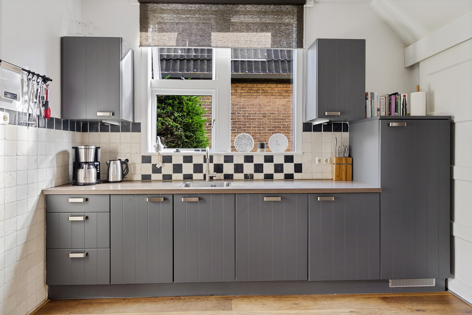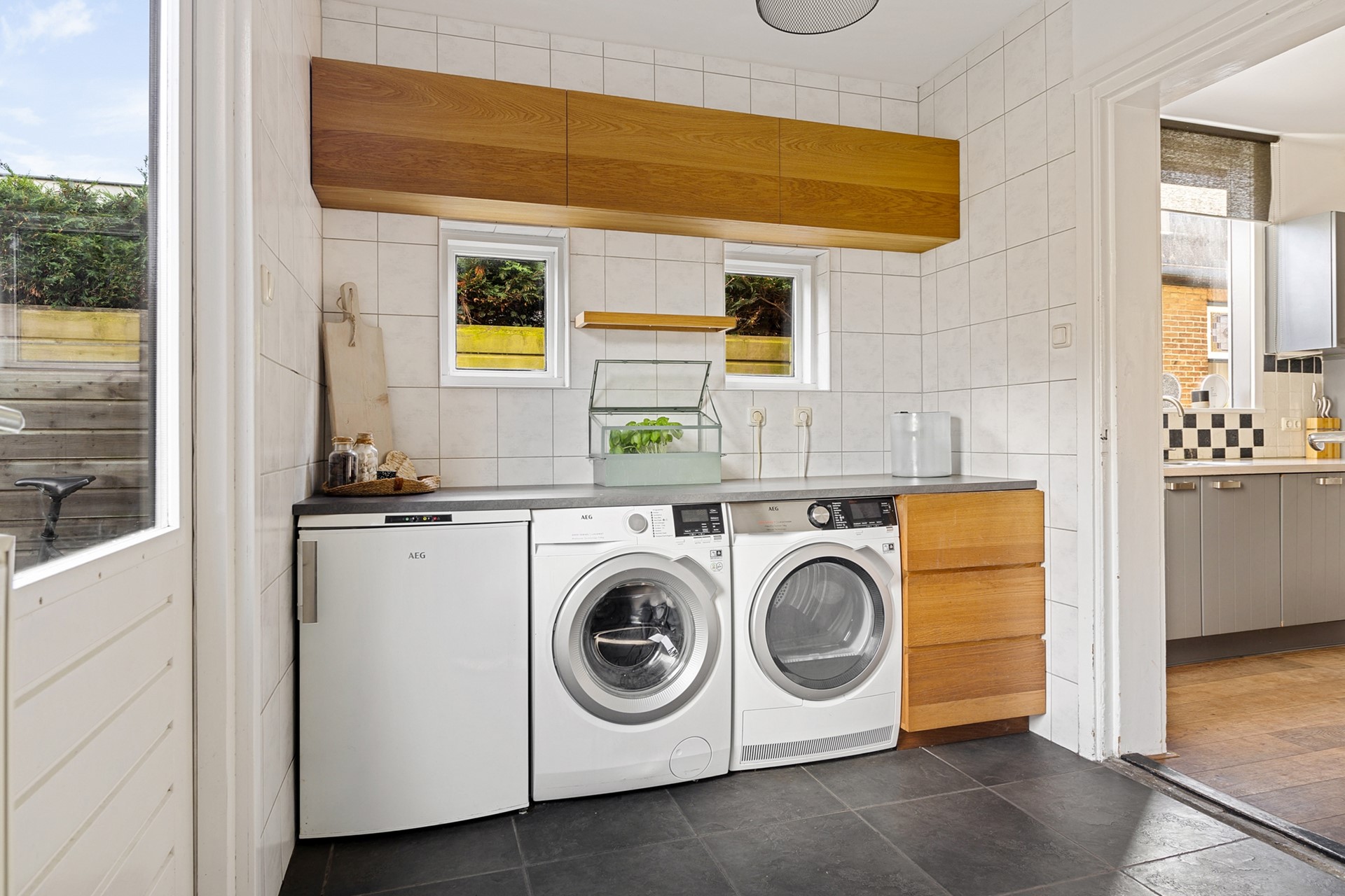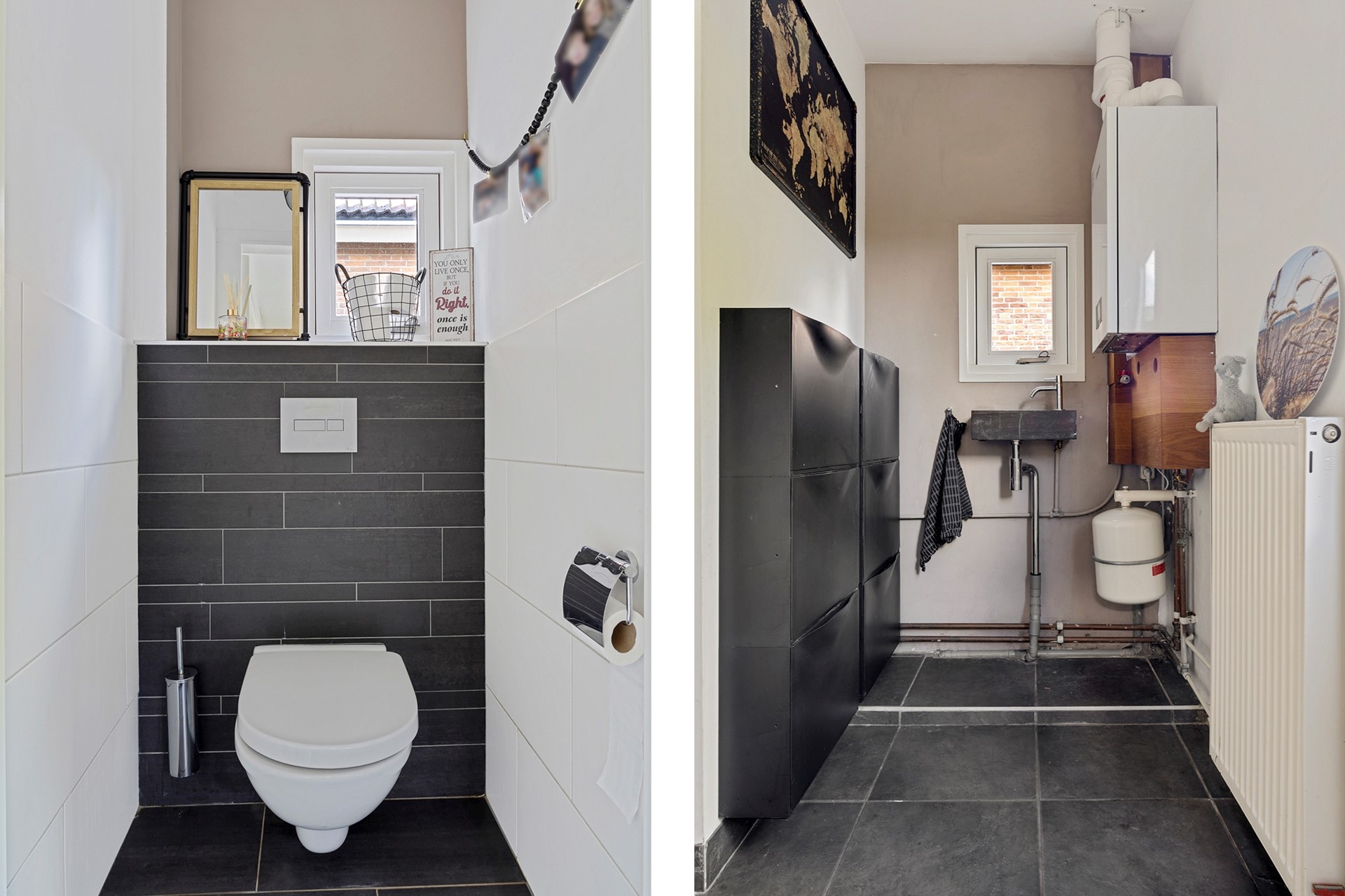 Achter de keuken vind je de praktische bijkeuken met opstelling voor wasmachine en droger, het toilet én de CV-installatie. Ideaal voor een georganiseerd huishouden.