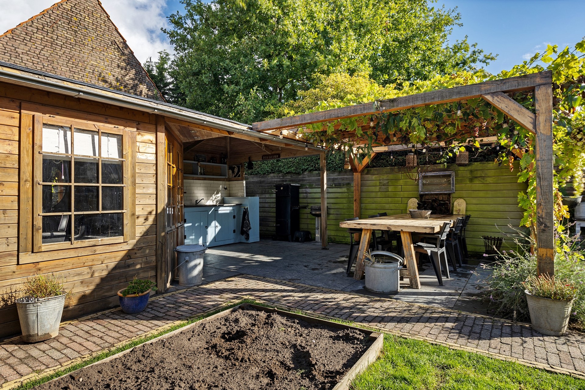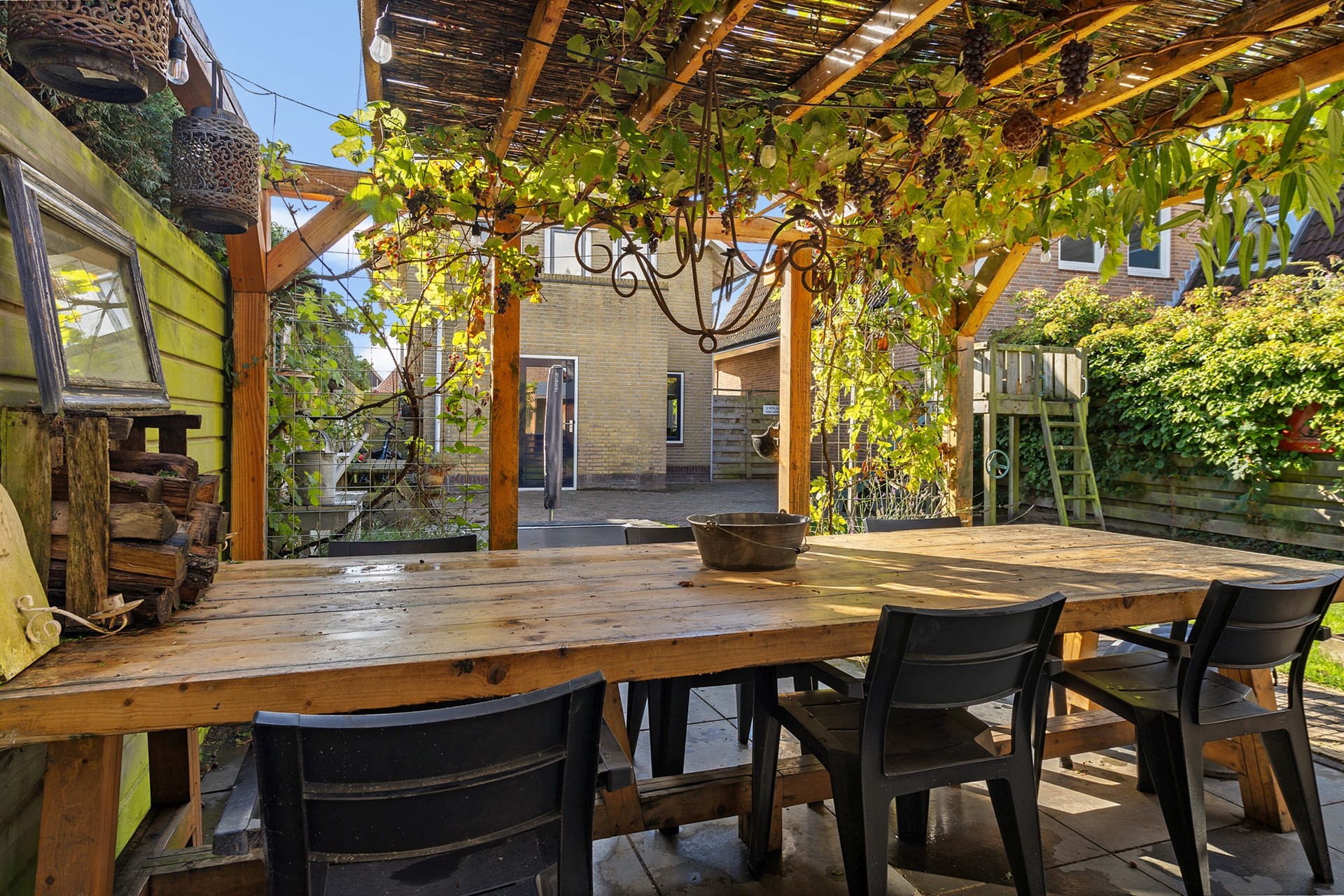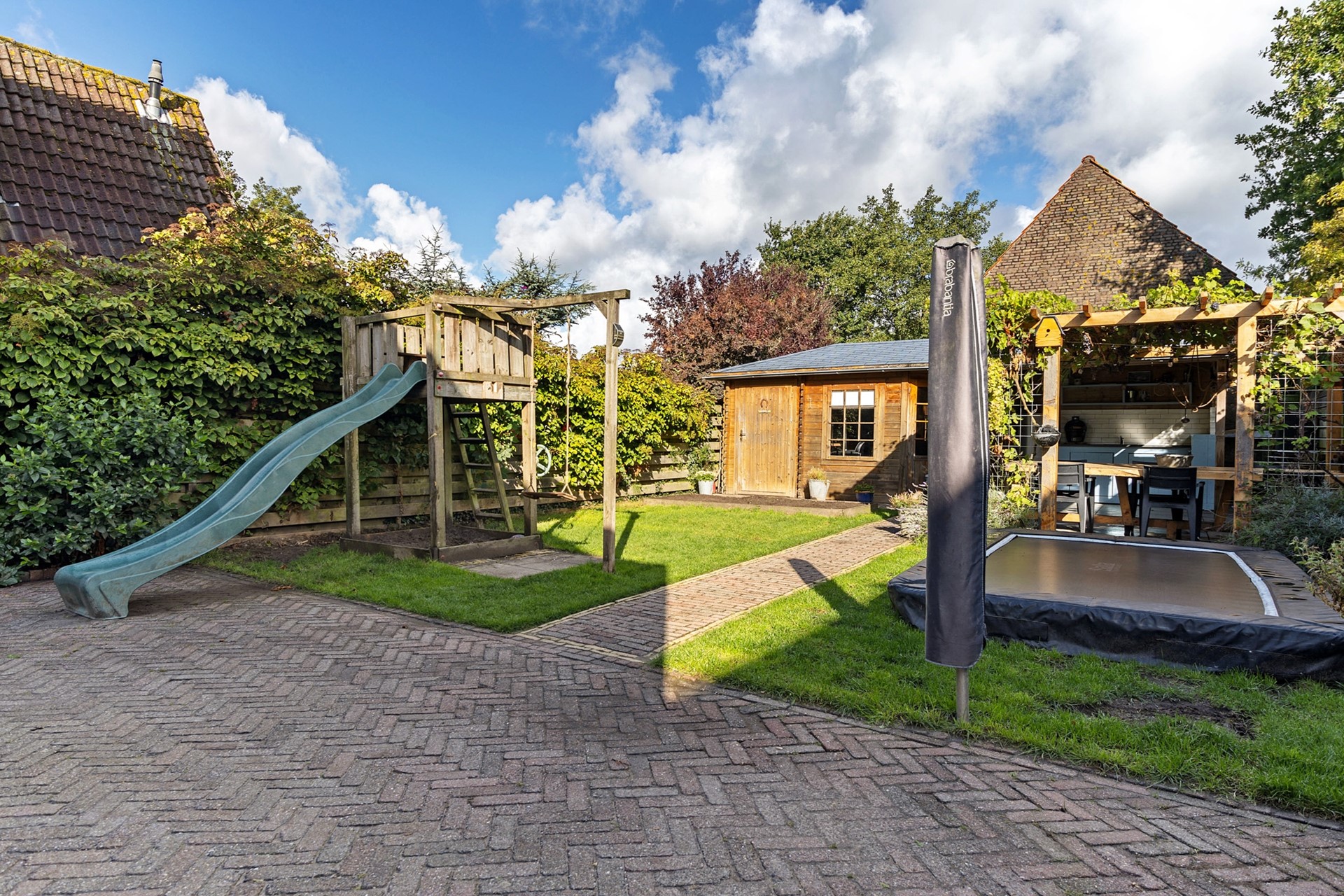 De achtertuin op het noorden is diep en breed, waardoor je hier de hele namiddag én avond van de zon kunt genieten. De tuin is speels en praktisch ingericht met onder andere: