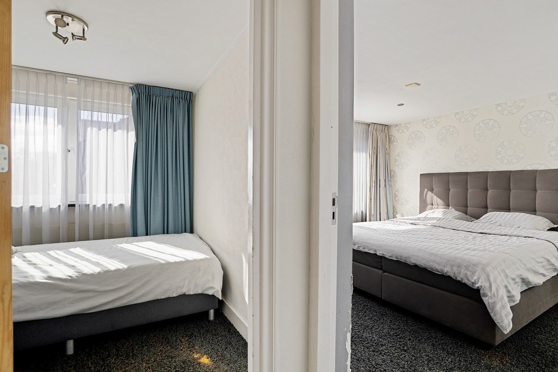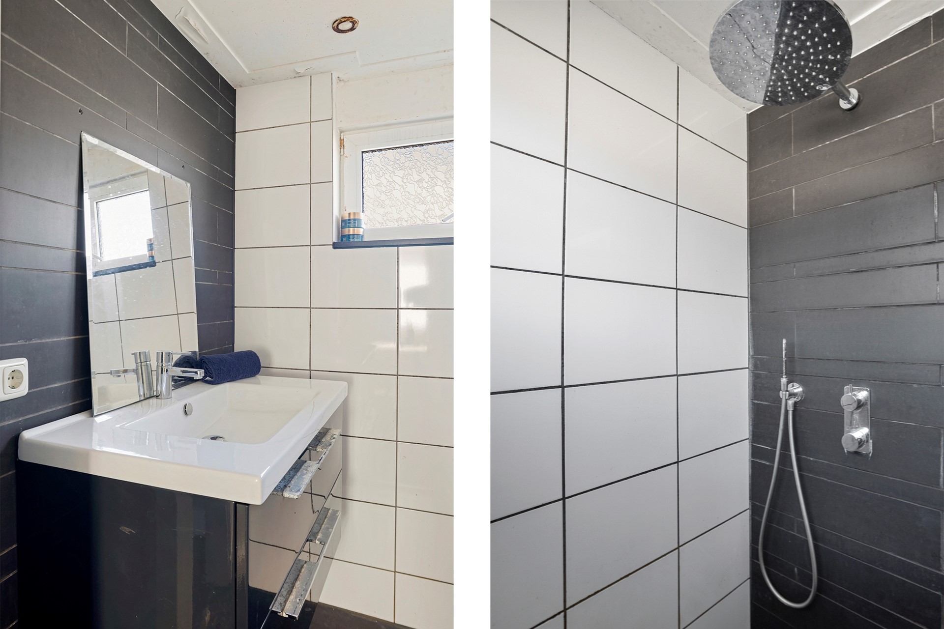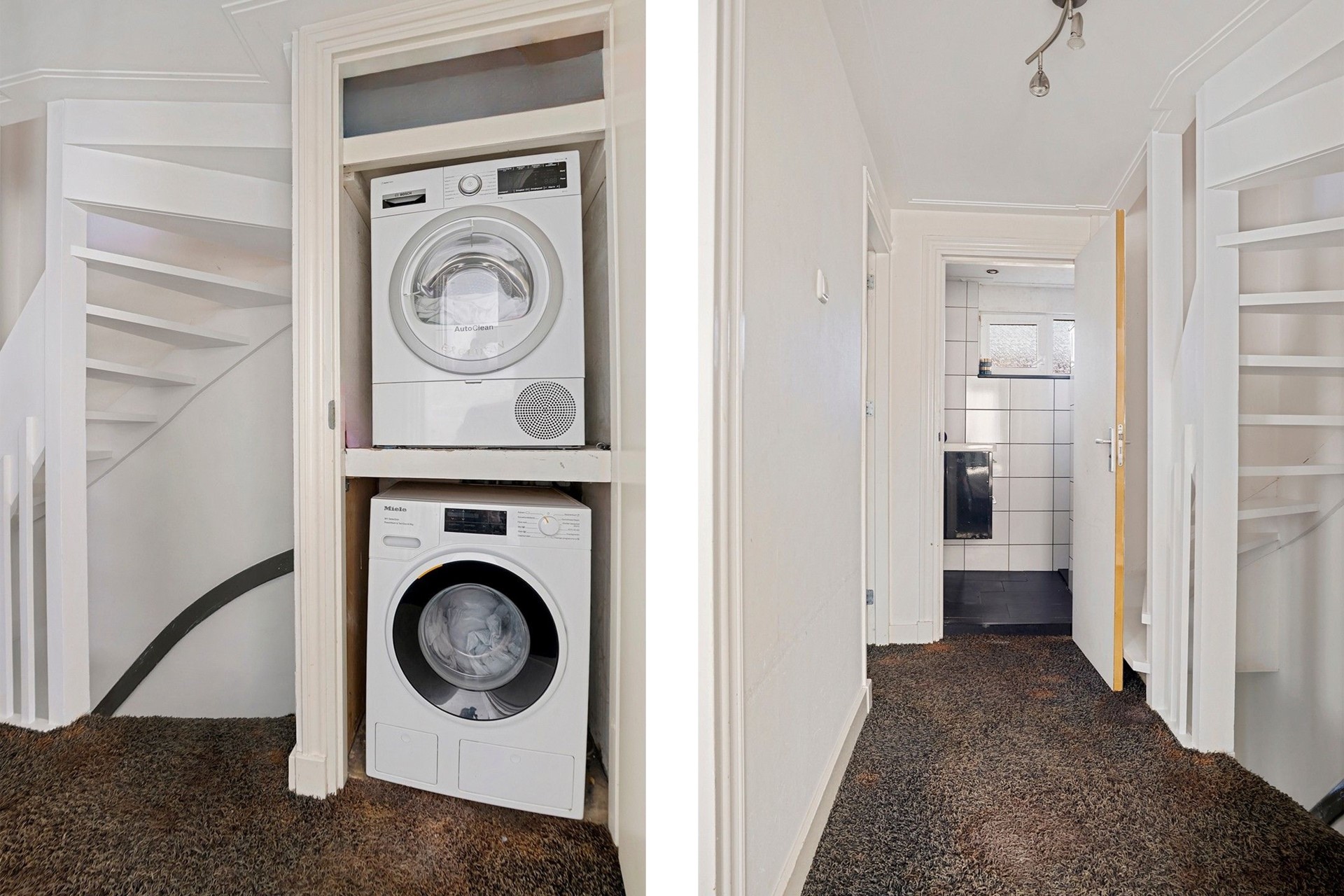 Op de eerste verdieping bevinden zich drie slaapkamers en een badkamer aan de straatzijde voorzien van douche en wastafel. Op de overloop is een praktische kast met opstelling voor wasmachine en droger.