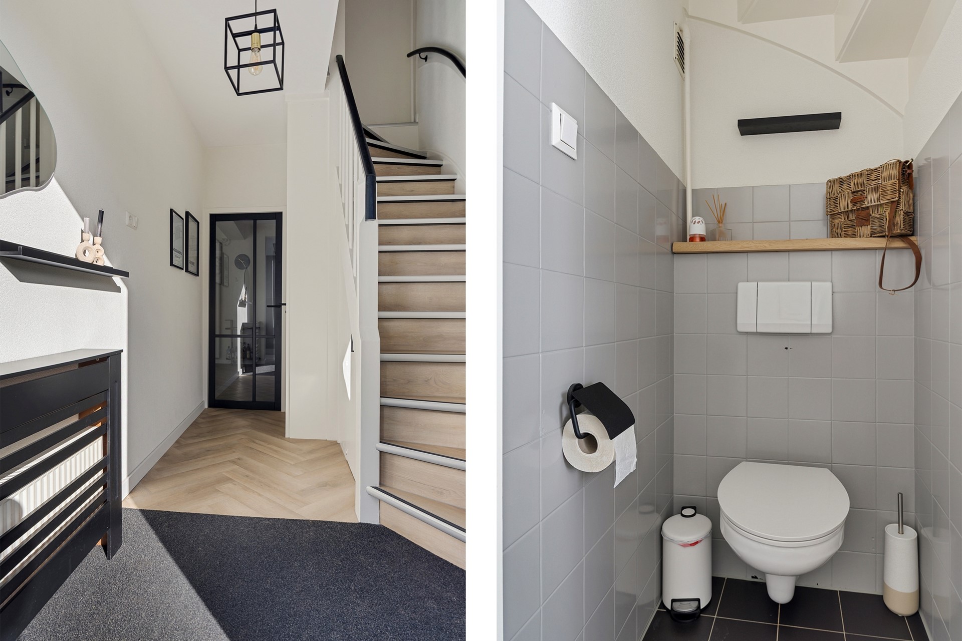 - Stijlvolle taatsdeur naar hal en modern toilet;