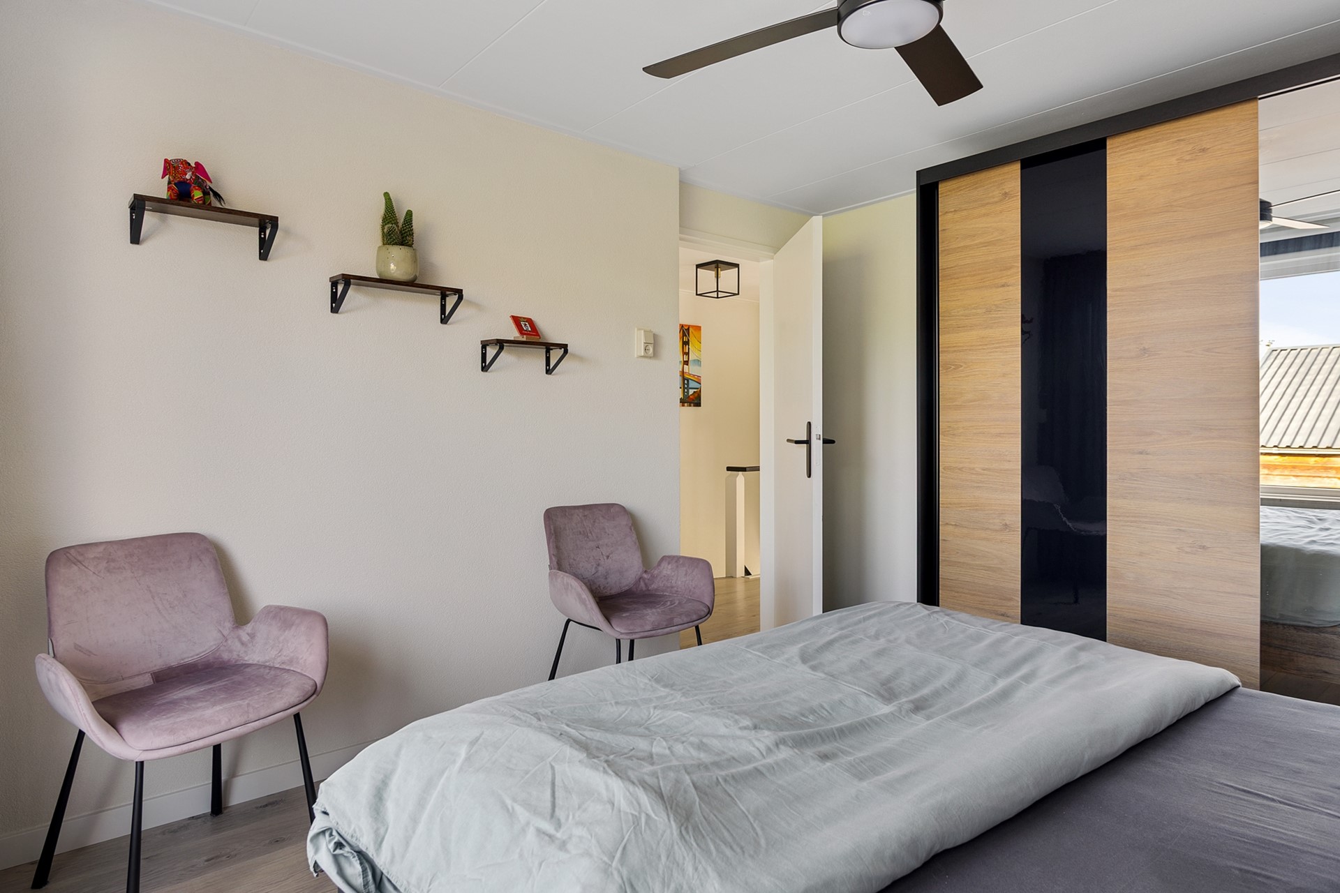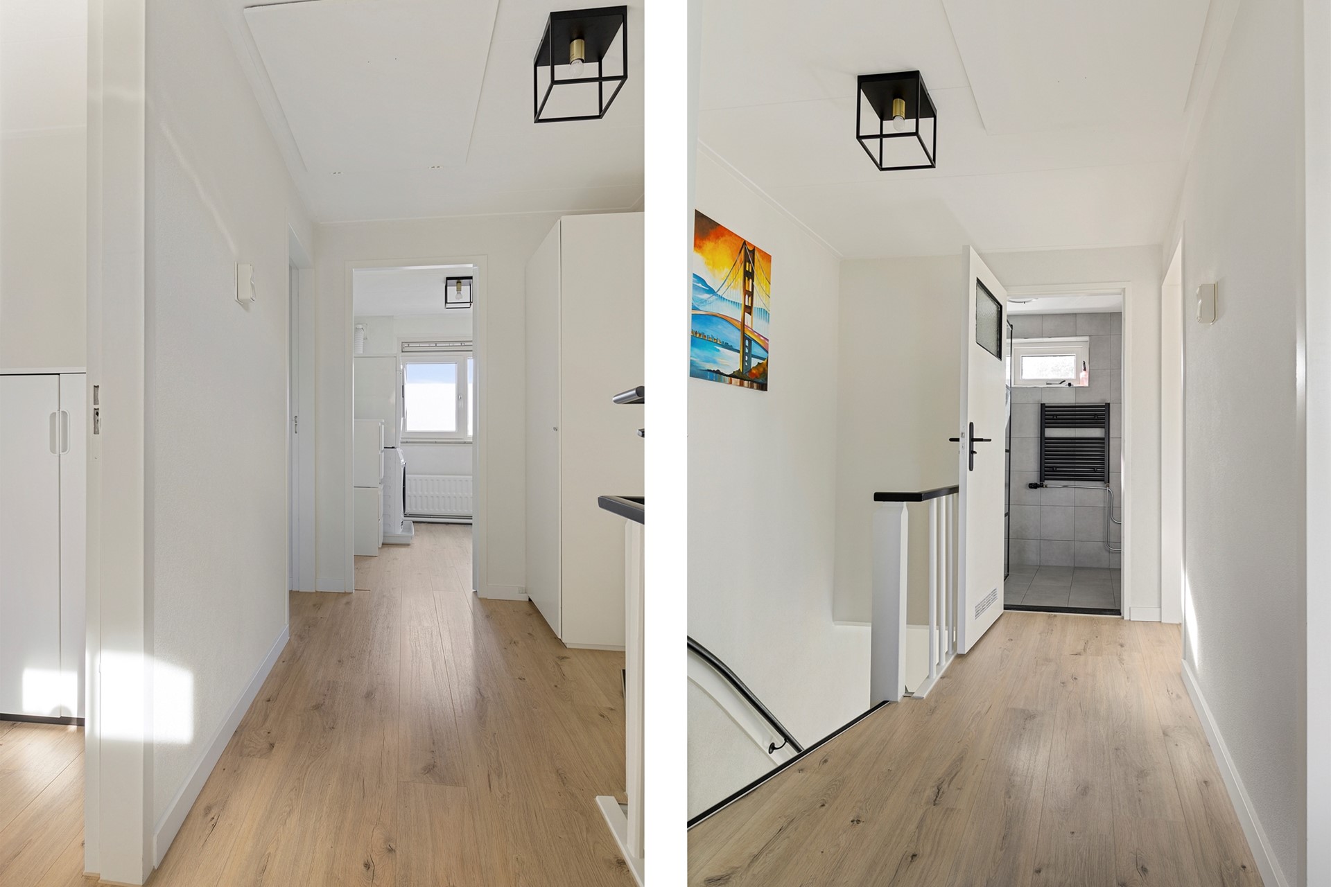 Op de eerste verdieping zijn drie slaapkamers aanwezig, waarvan er momenteel één in gebruik is als praktische wasruimte. Aan de voorzijde tref je de recent vernieuwde badkamer met inloopdouche en wastafelmeubel. De tweede verdieping, bereikbaar via een vlizotrap, biedt extra bergruimte, naast de opstelling van de cv-installatie, de omvormer voor de zonnecollectoren en de warmtepomp.