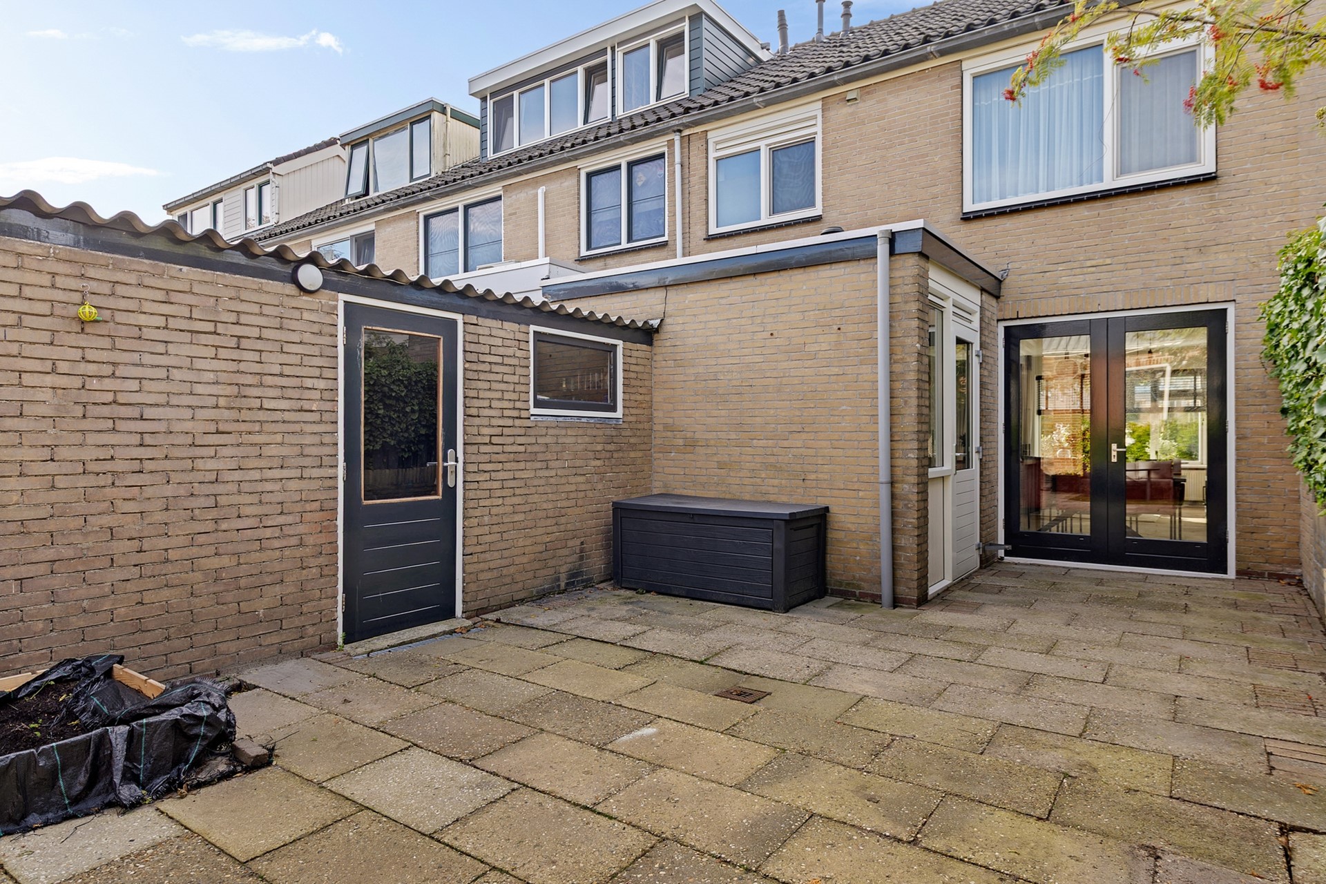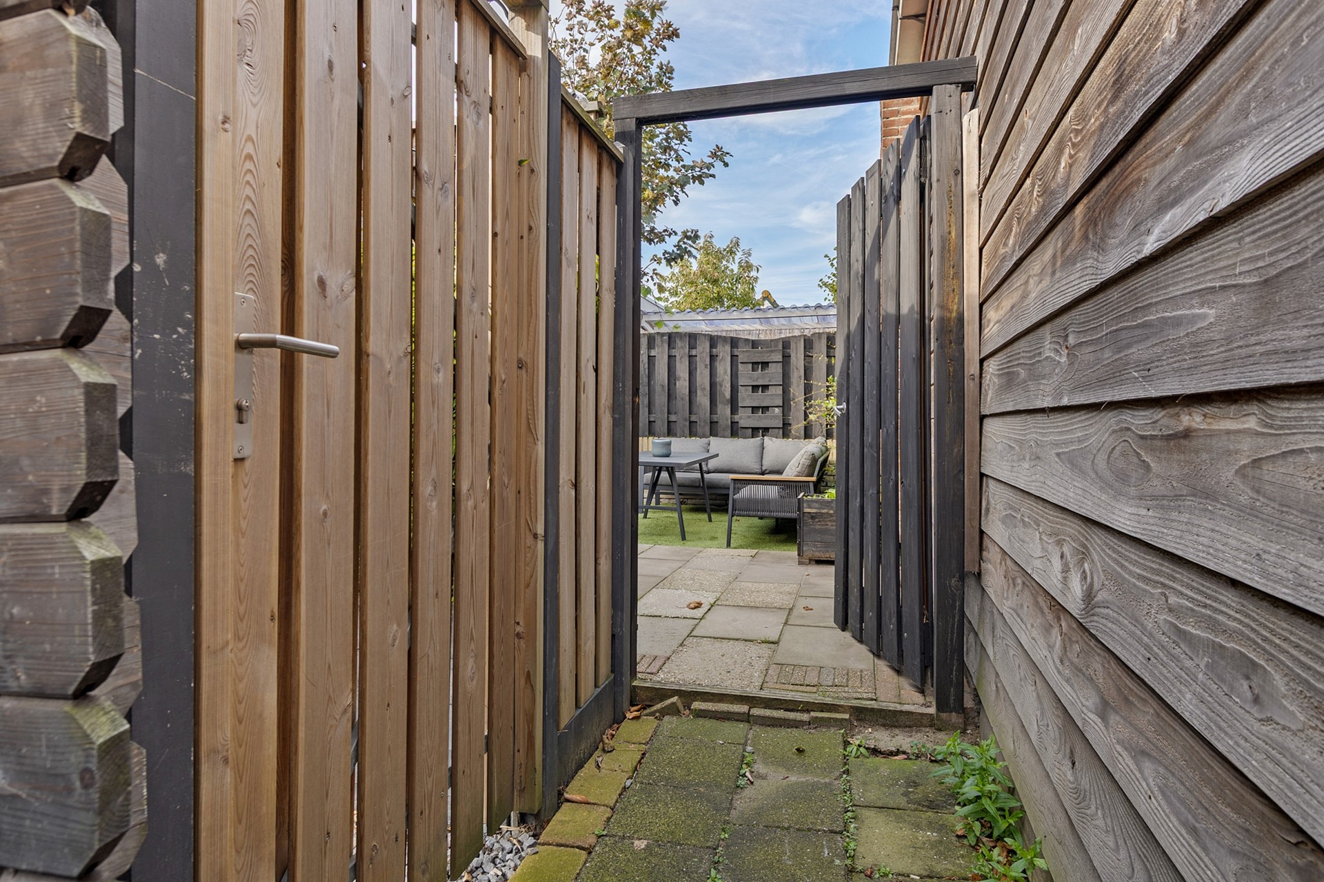 De achtertuin ligt op het noorden, maar dankzij de diepte van het perceel is er altijd wel een zonnestraaltje mee te pakken. Hier vind je ook de achterom en een handige berging.