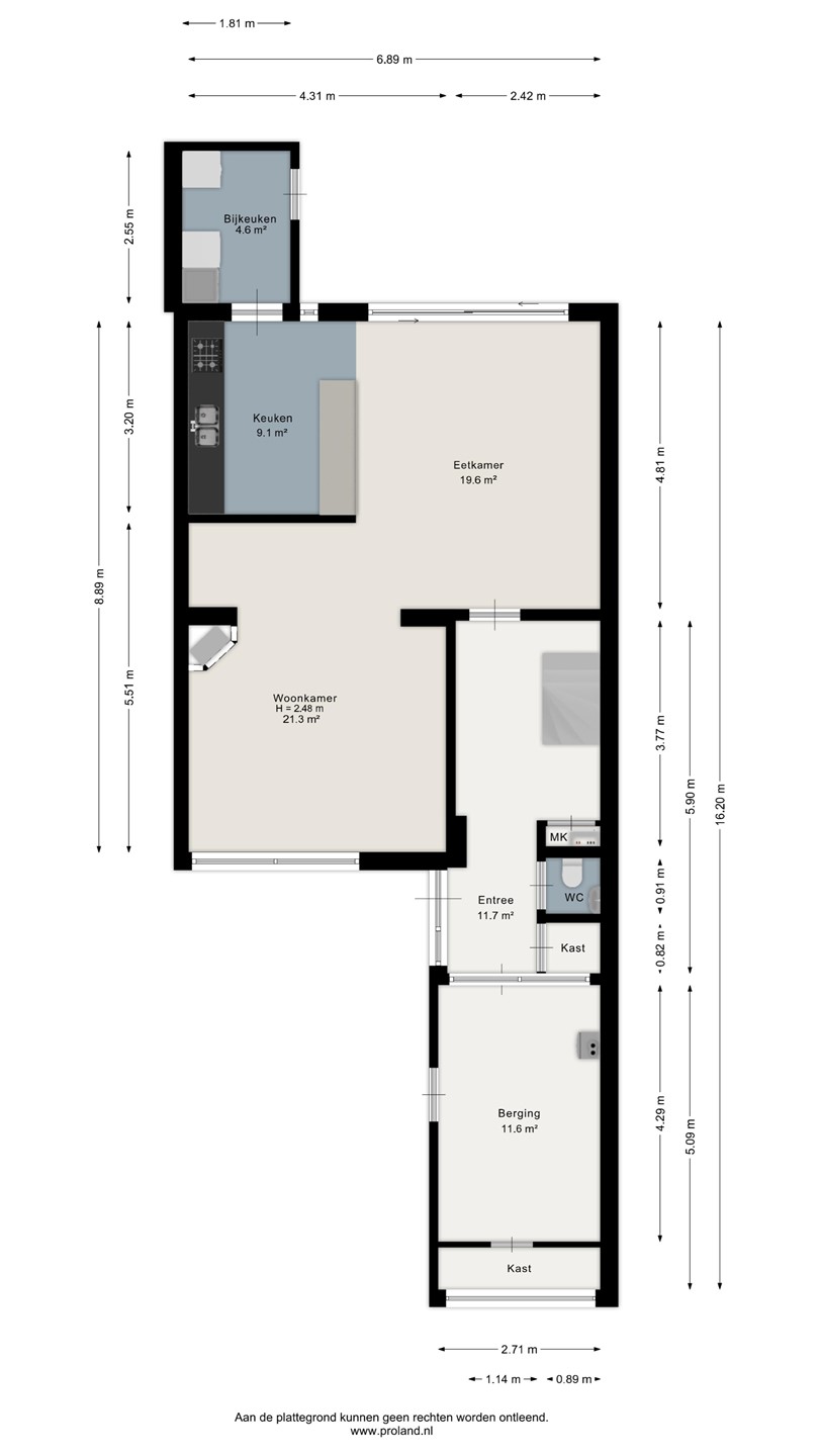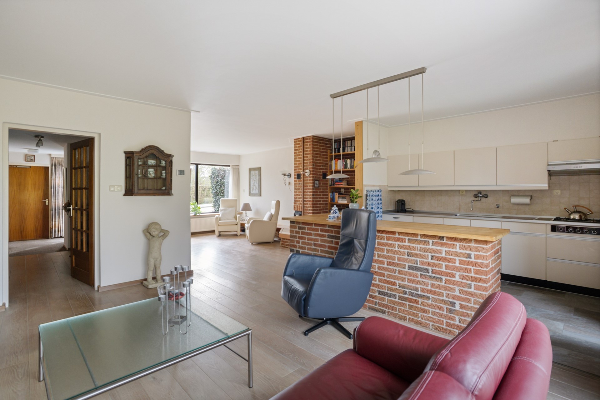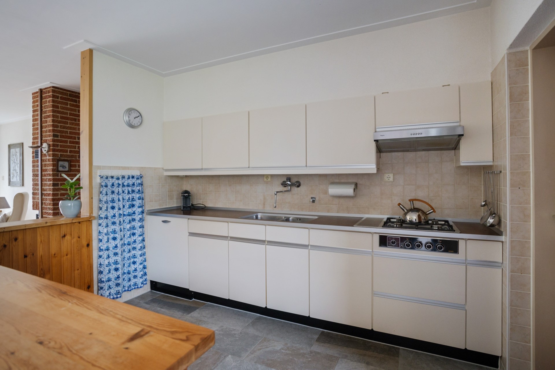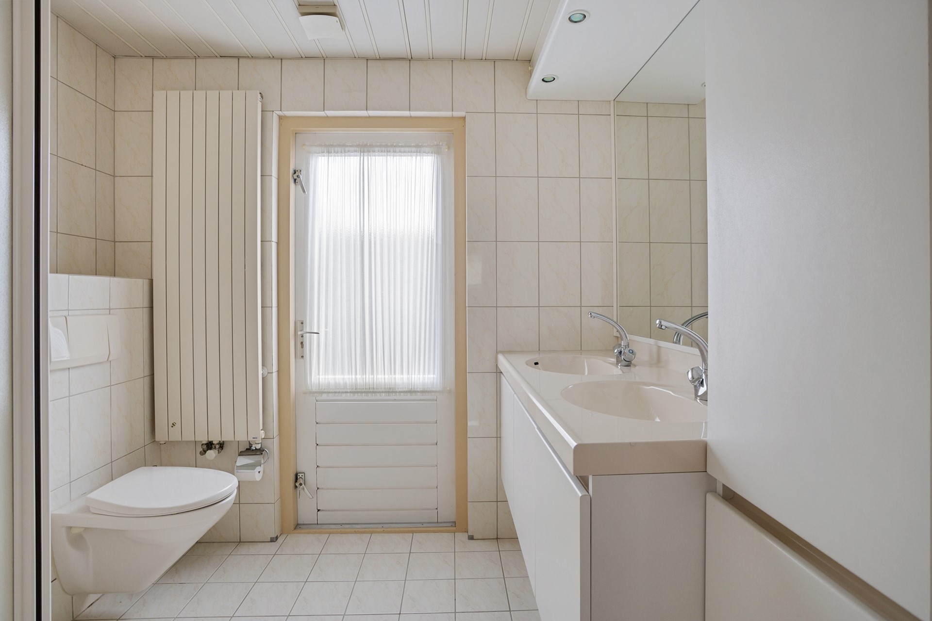 Aansluitend bevindt zich de praktische bijkeuken met wasmachine- en drogeraansluitingen en een loopdeur naar de tuin.