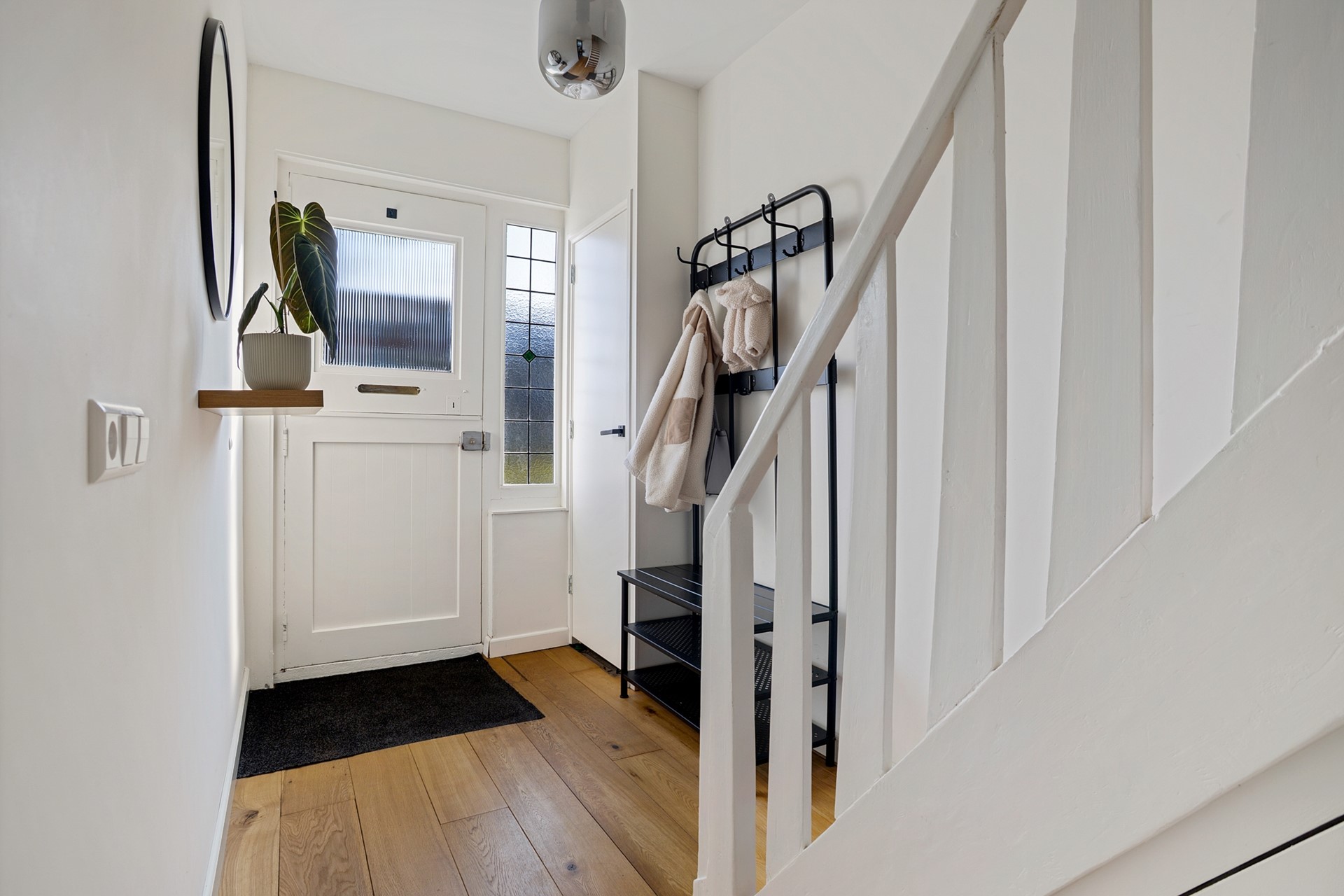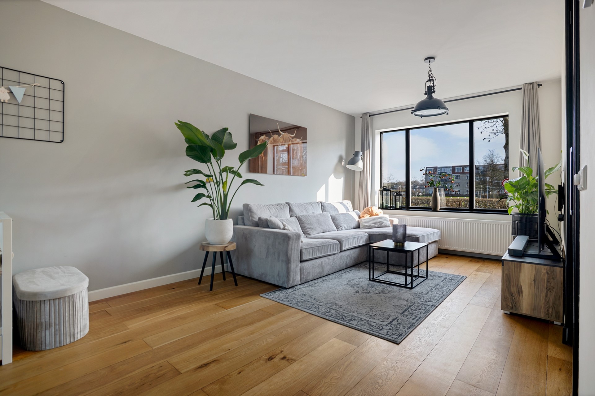Via de ruime entree kom je binnen in de hal met garderoberuimte, meterkast en een modern toilet. Vanuit hier stap je de straatgerichte woonkamer binnen; een fijne plek met veel lichtinval en een warme, huiselijke sfeer.
