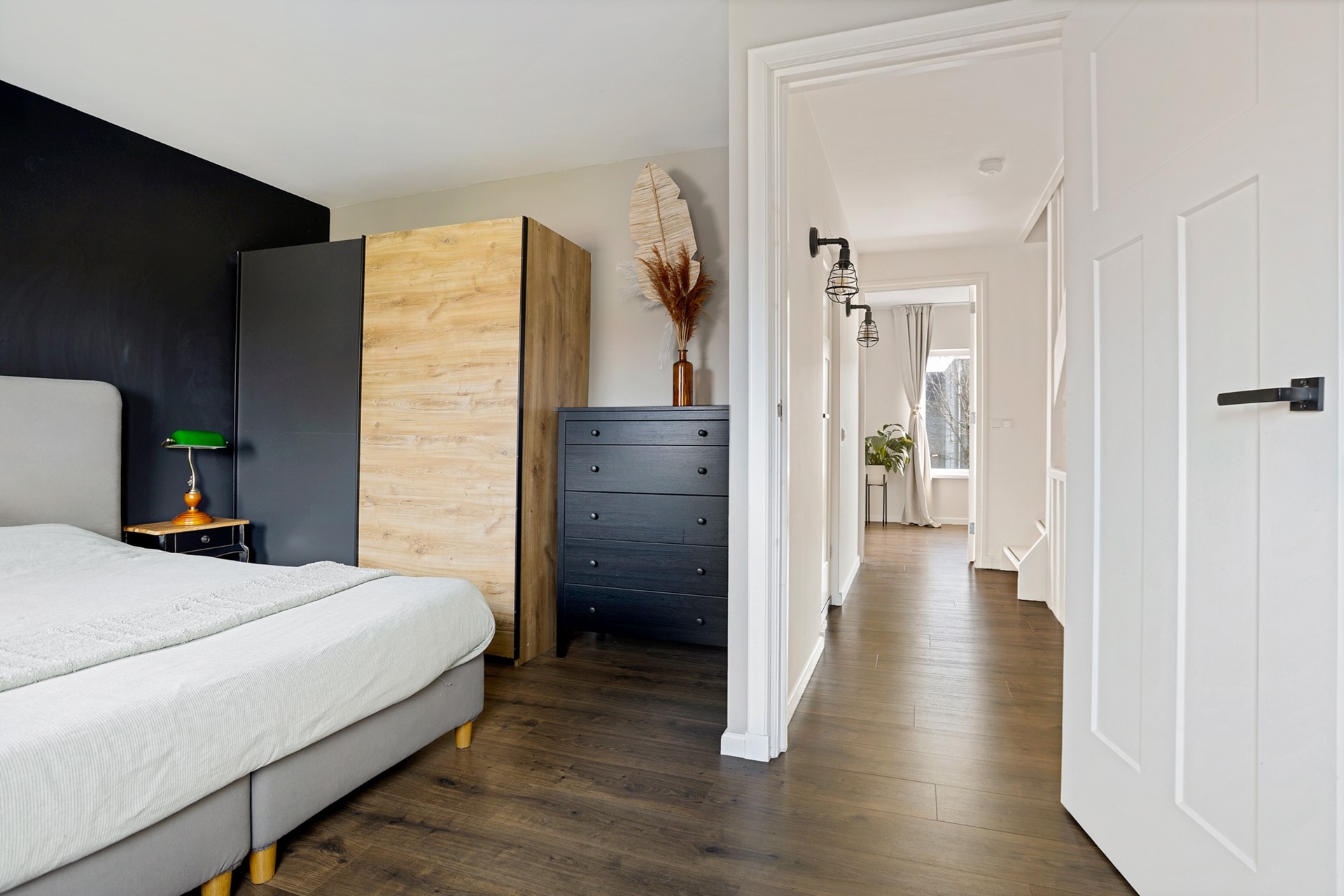 Via een vaste trap bereik je de recent gerealiseerde tweede verdieping. Hier bevinden zich nog eens twee volwaardige slaapkamers, beide voorzien van grote raampartijen waardoor ook deze verdieping heerlijk licht is. Tussen de kamers bevindt zich een praktische berging met de opstelplaats van de cv-ketel. Daarnaast is er op de overloop nog een aparte ruimte voor de wasmachine en droger.