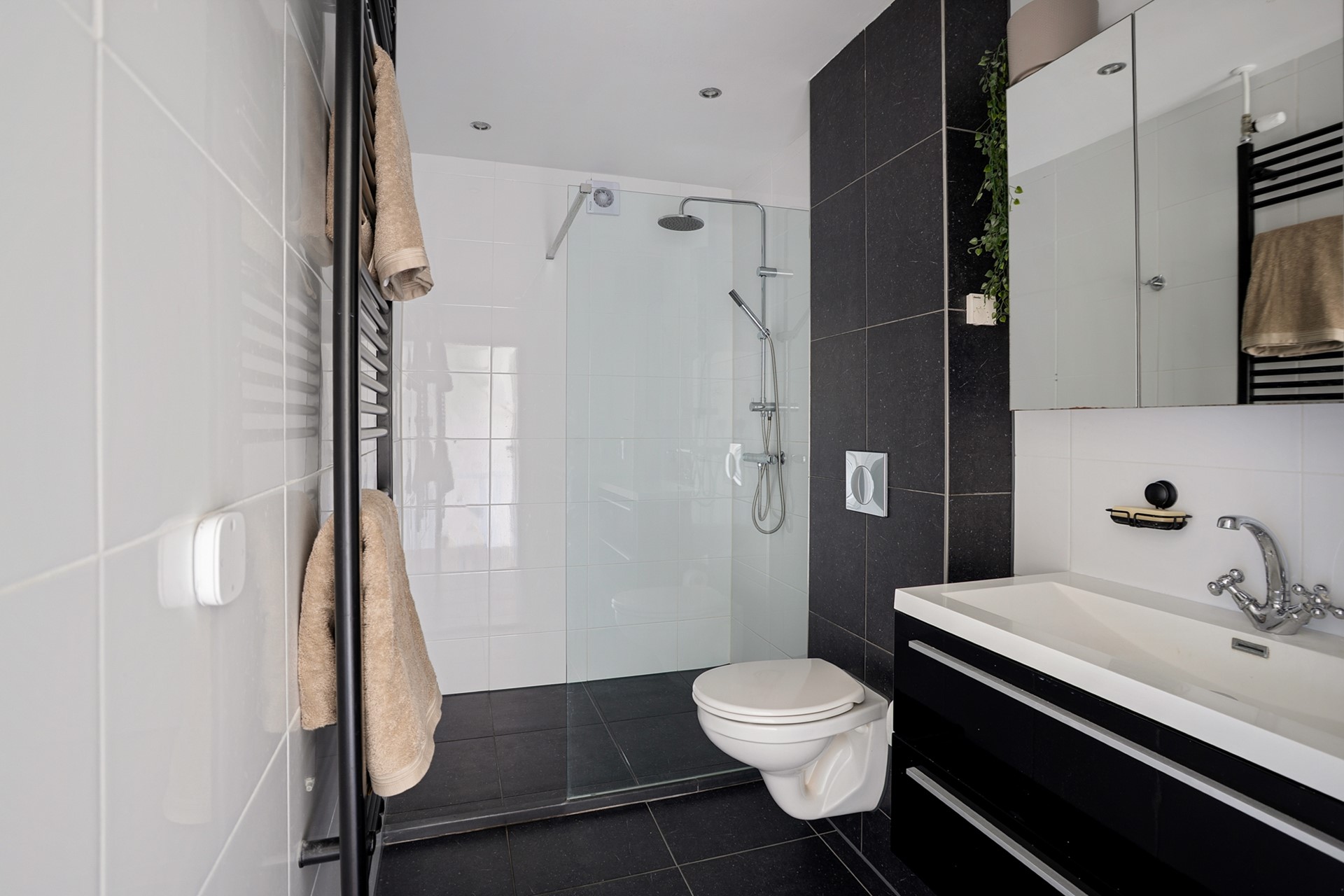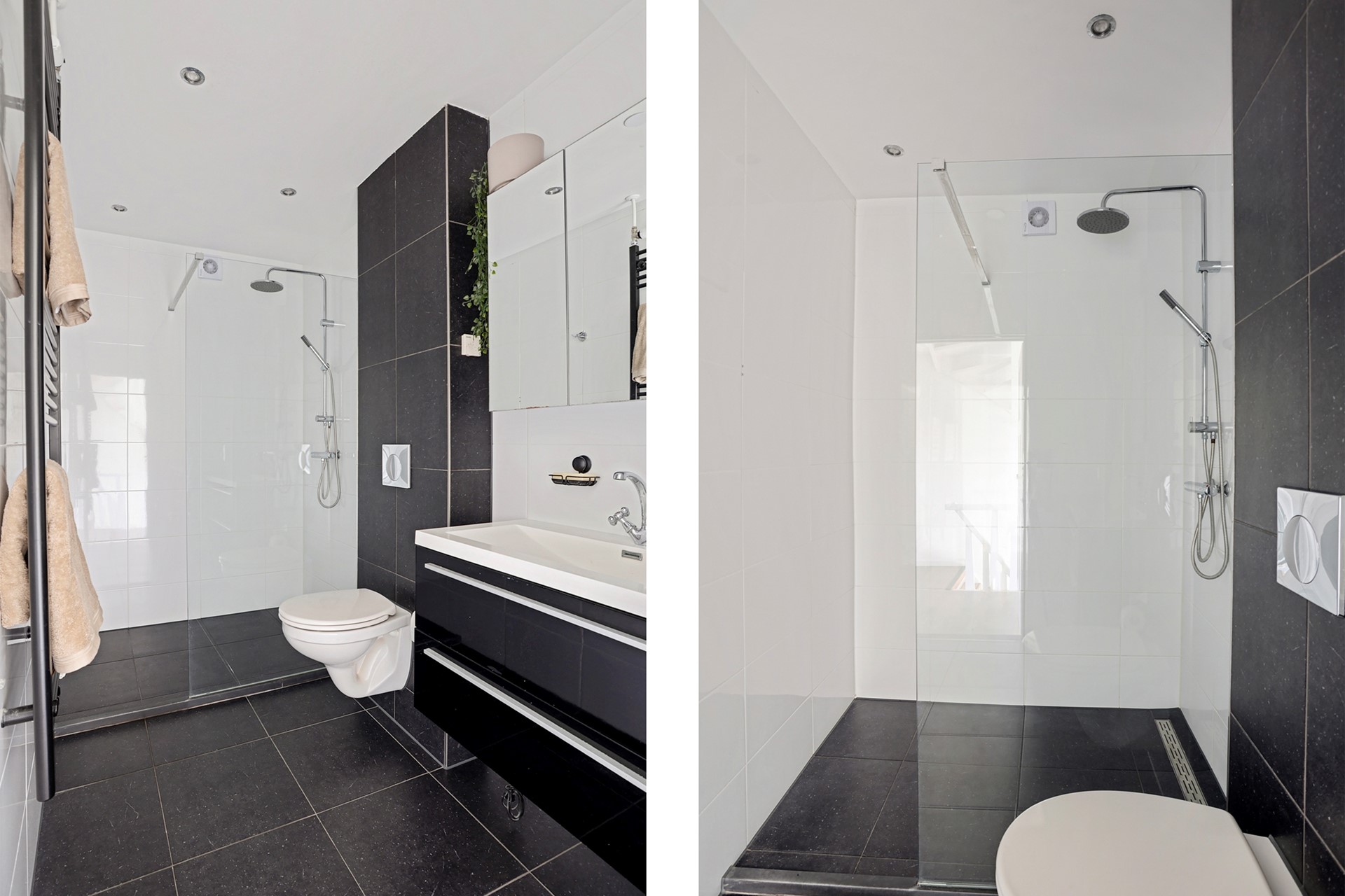 • Moderne badkamer met douche, toilet en wastafelmeubel