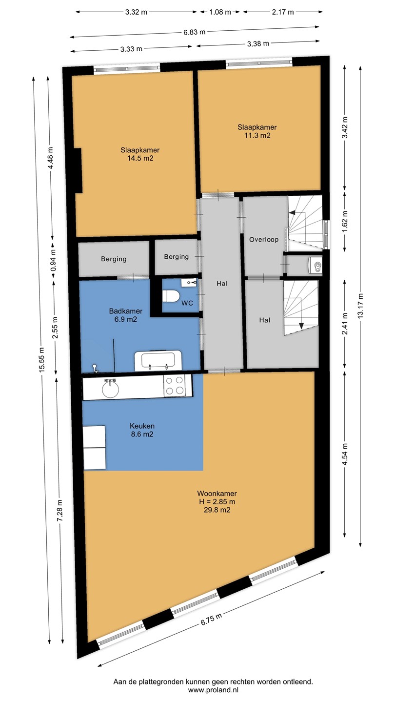 Tweede verdieping – appartement 2 (ca. 66 m²)
