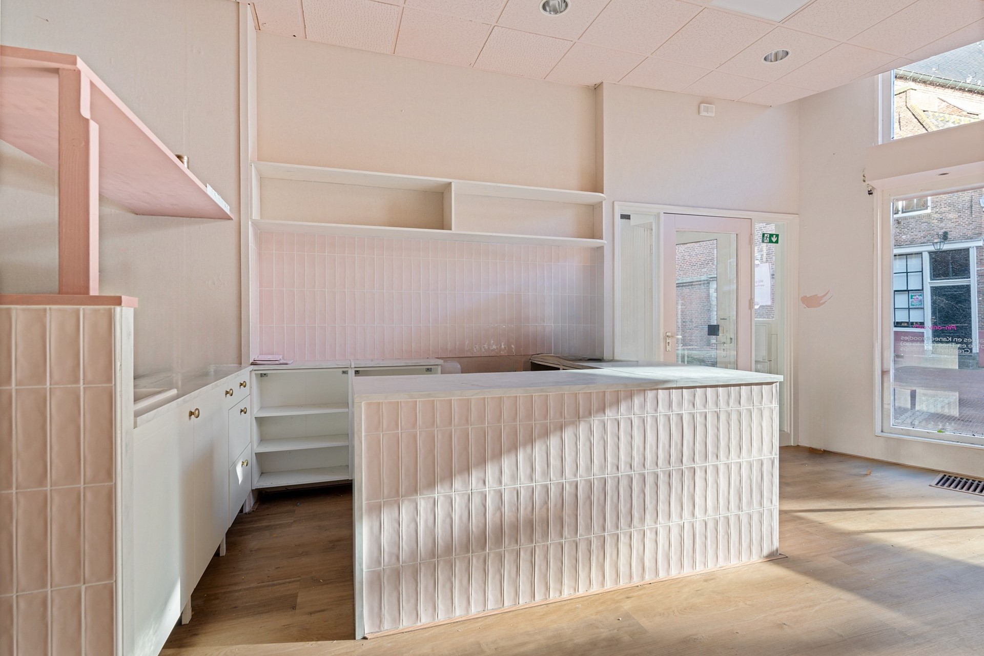 Via de gezamenlijke entree met beltableau is de commerciële ruimte bereikbaar. De winkel beschikt over een brede glazen pui met uitstekende zichtbaarheid aan het Kleine Noord en veel daglichttoetreding.