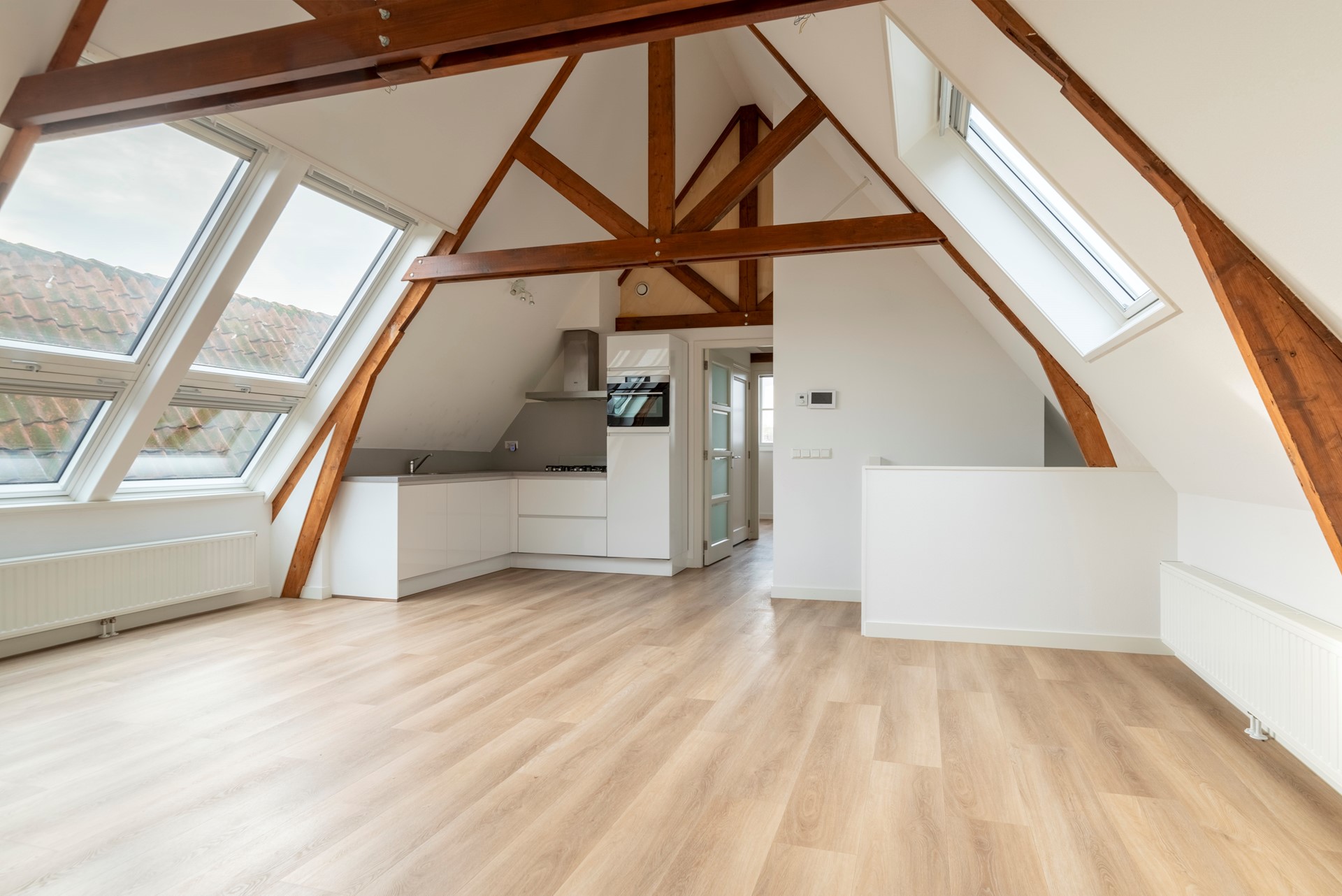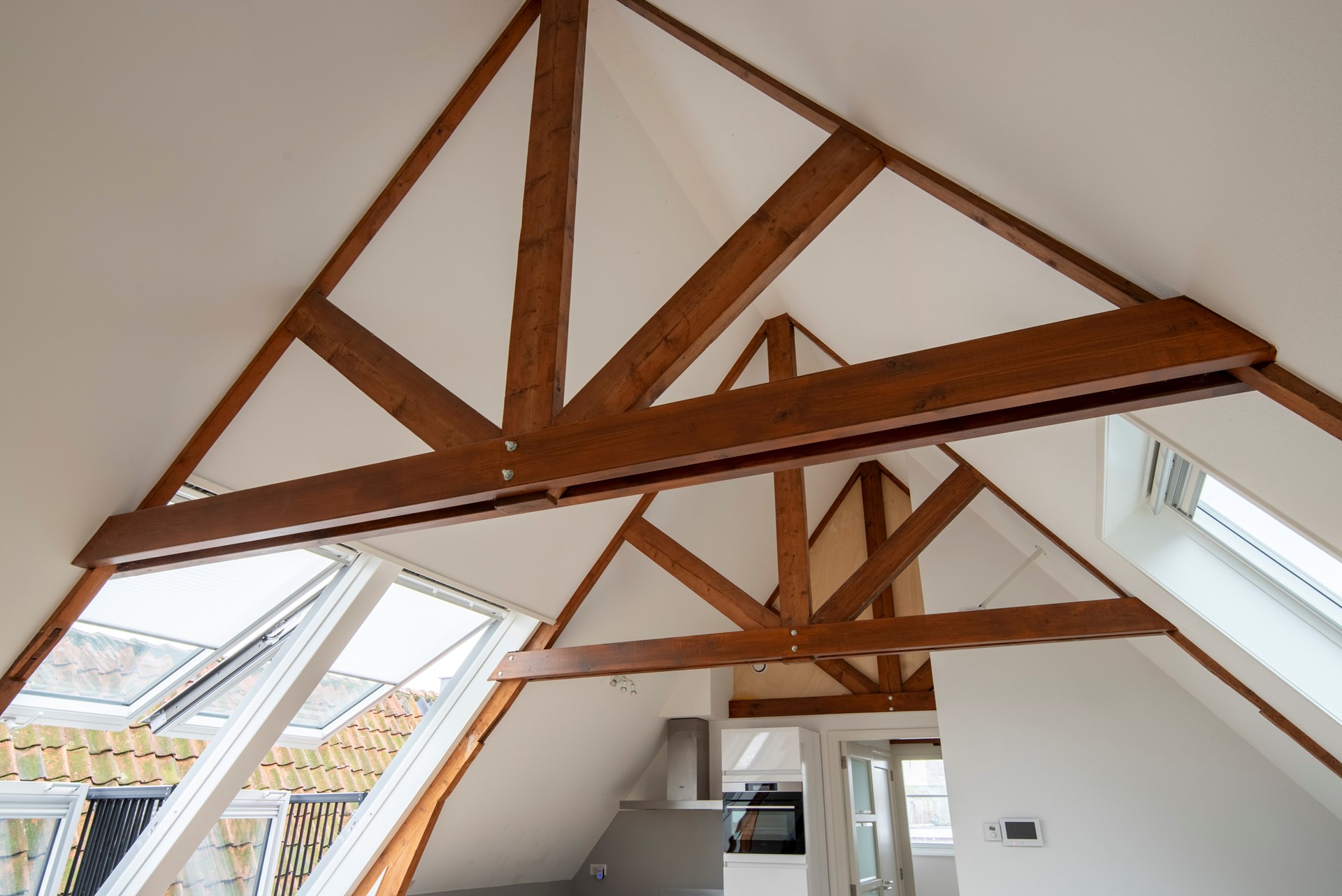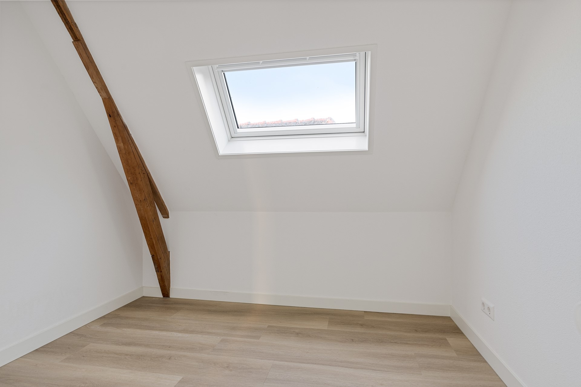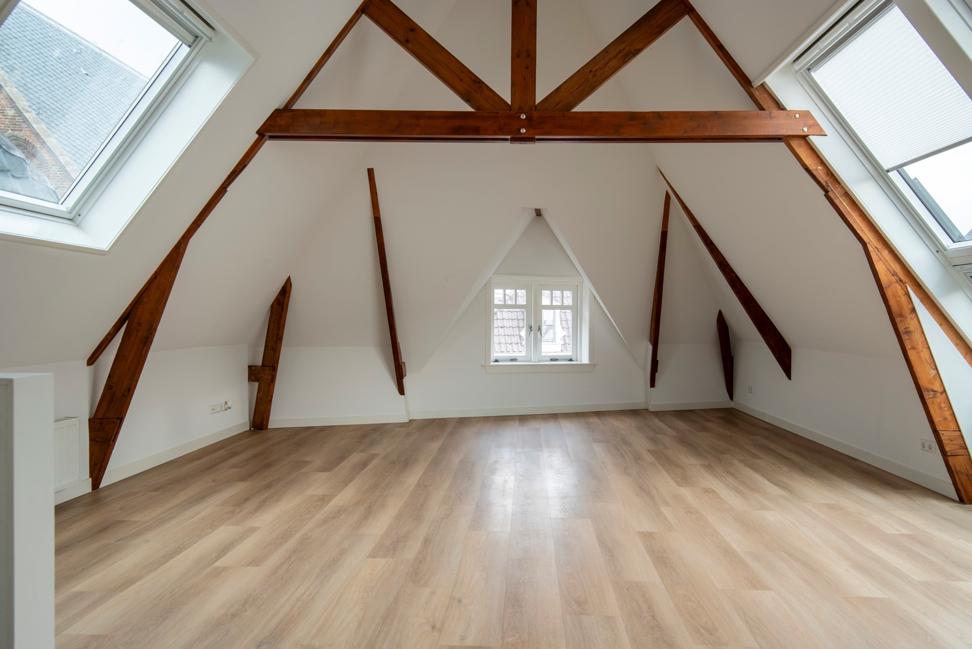 Deze verdieping is een ware verrassing: de fraaie houten balkenconstructie, twee dakkapellen en twee Velux-balkons zorgen voor een bijzonder karakter en veel lichtinval.
