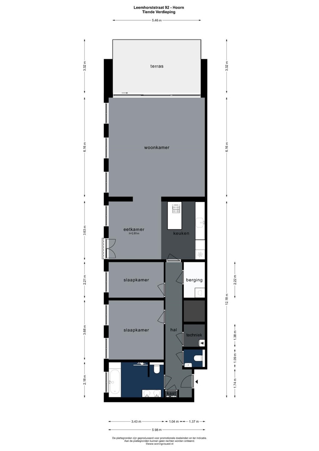 In de luxe woontoren “De Toren van Hoorn” bieden wij, halverwege de toren op de tiende verdieping, dit ruime driekamerappartement met royaal balkon aan. Vanuit de woning geniet je van een prachtig en uniek uitzicht over de skyline van Hoorn. Zo zijn onder andere schouwburg Het Park, station Hoorn, de Koepelkerk en het Markermeer te bewonderen. De ligging is bovendien zeer gunstig ten opzichte van uitvalswegen, openbaar vervoer en de gezellige binnenstad.