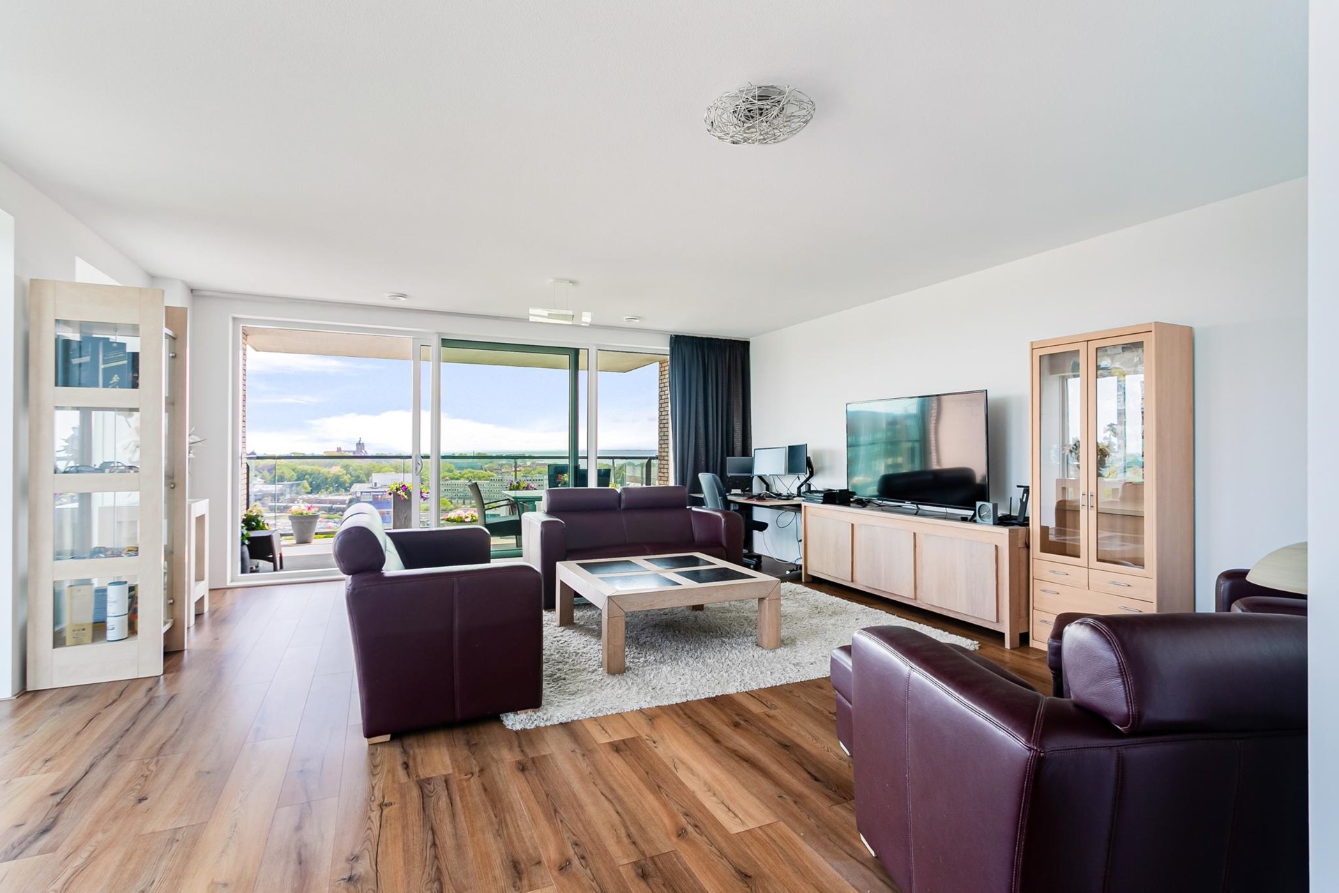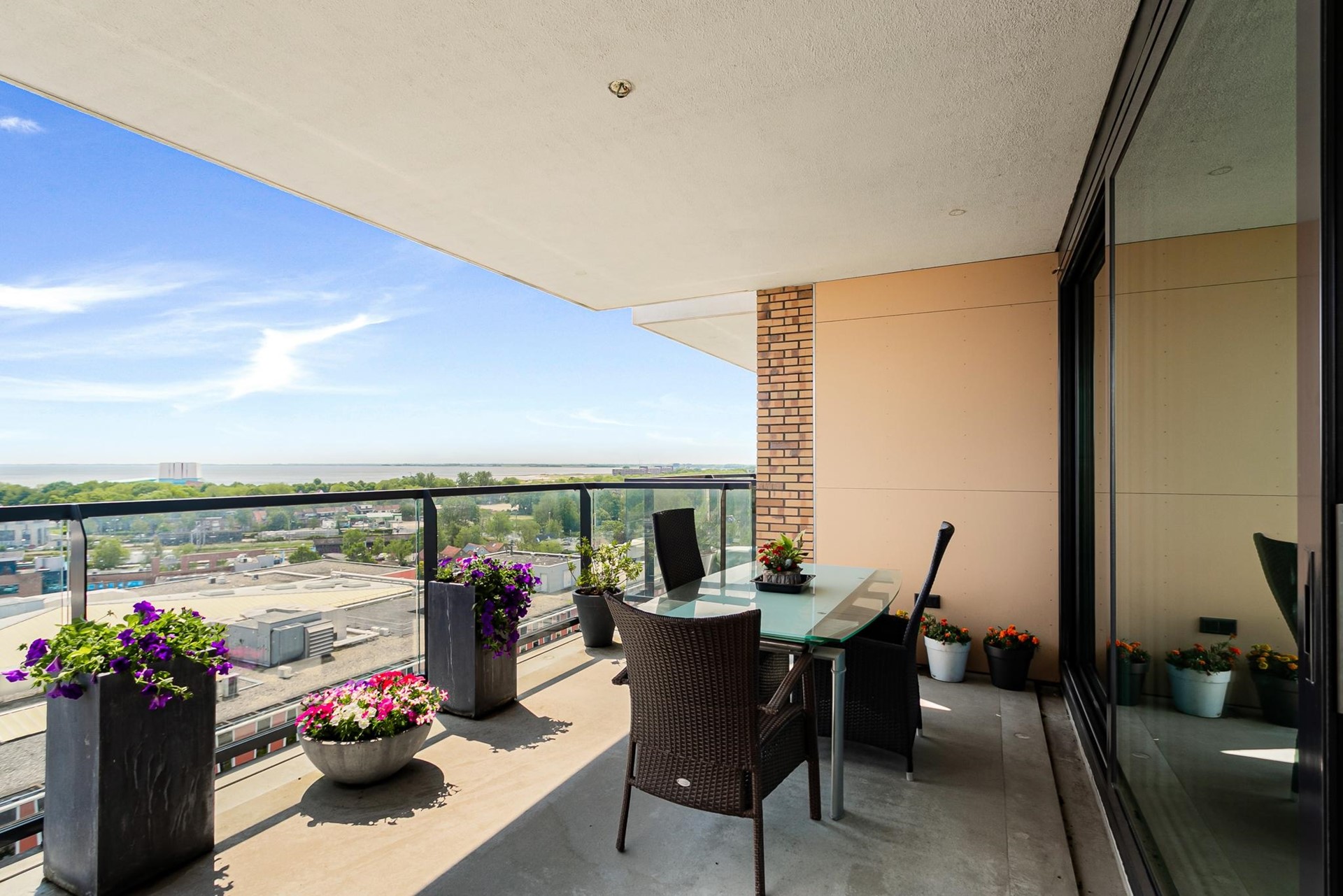 De living wordt gekenmerkt door grote glaspartijen, die zorgen voor een uitstekende lichtinval en een subliem uitzicht over Hoorn en het Markermeer. Het balkon van ca. 18 m² biedt volop ruimte om te ontspannen en te genieten.