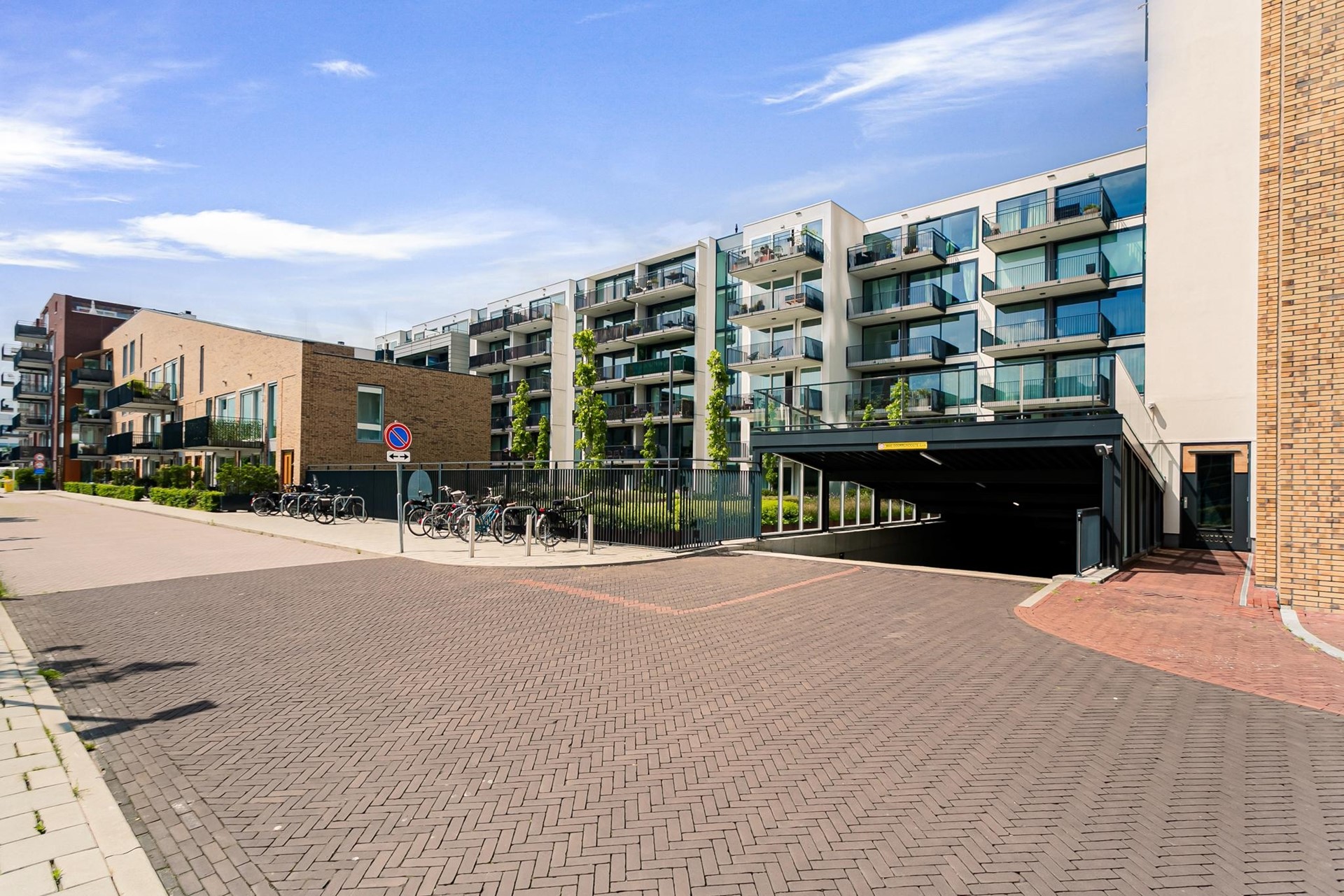 In de ondergelegen parkeerkelder beschik je over een eigen parkeerplaats en een privéberging (ca. 5 m²) met elektra. Tevens is hier een gemeenschappelijke fietsenstalling aanwezig.