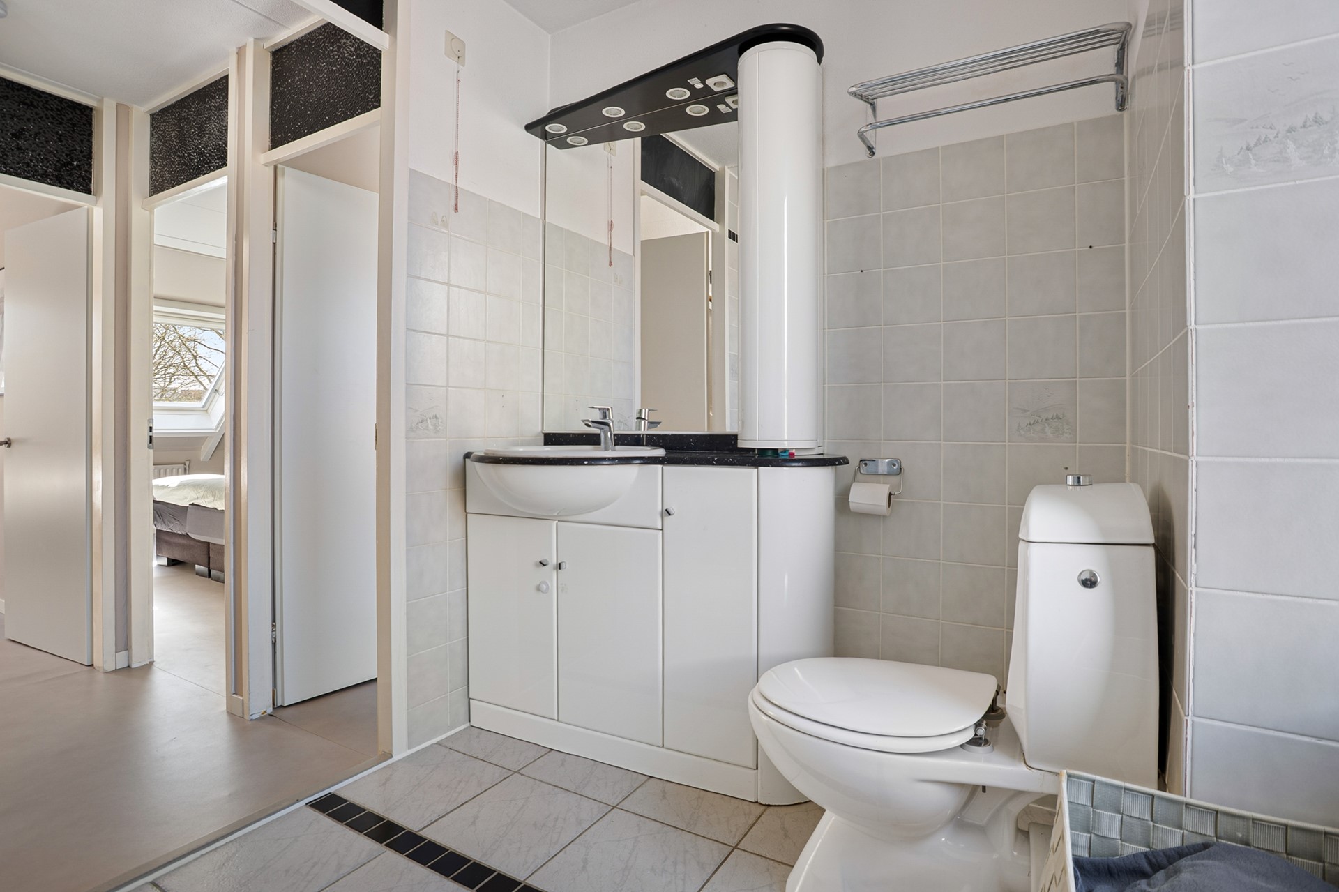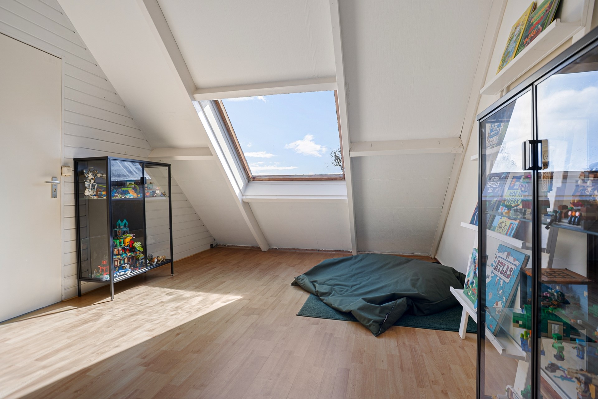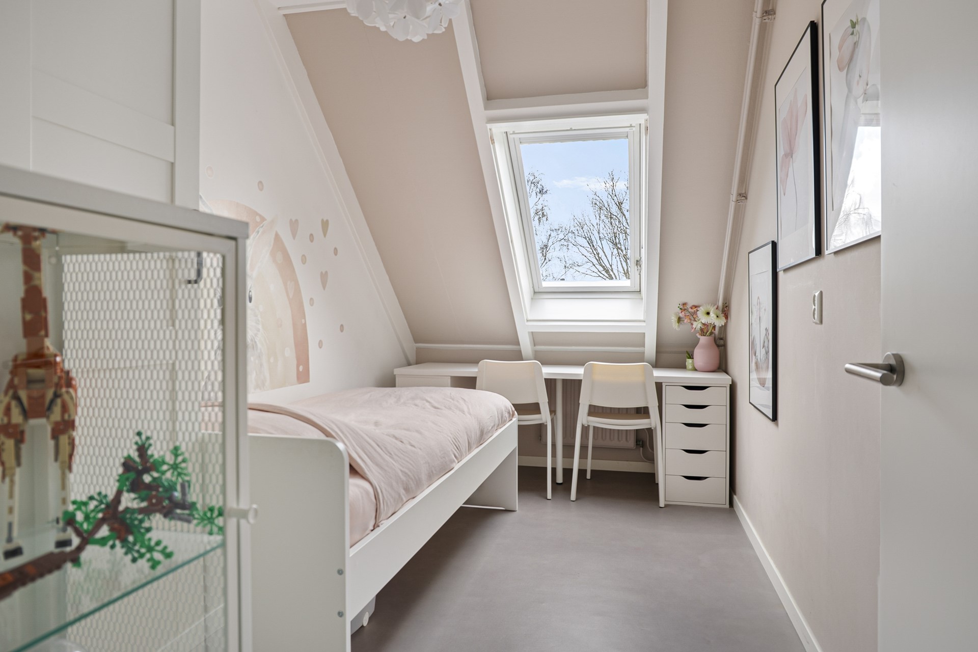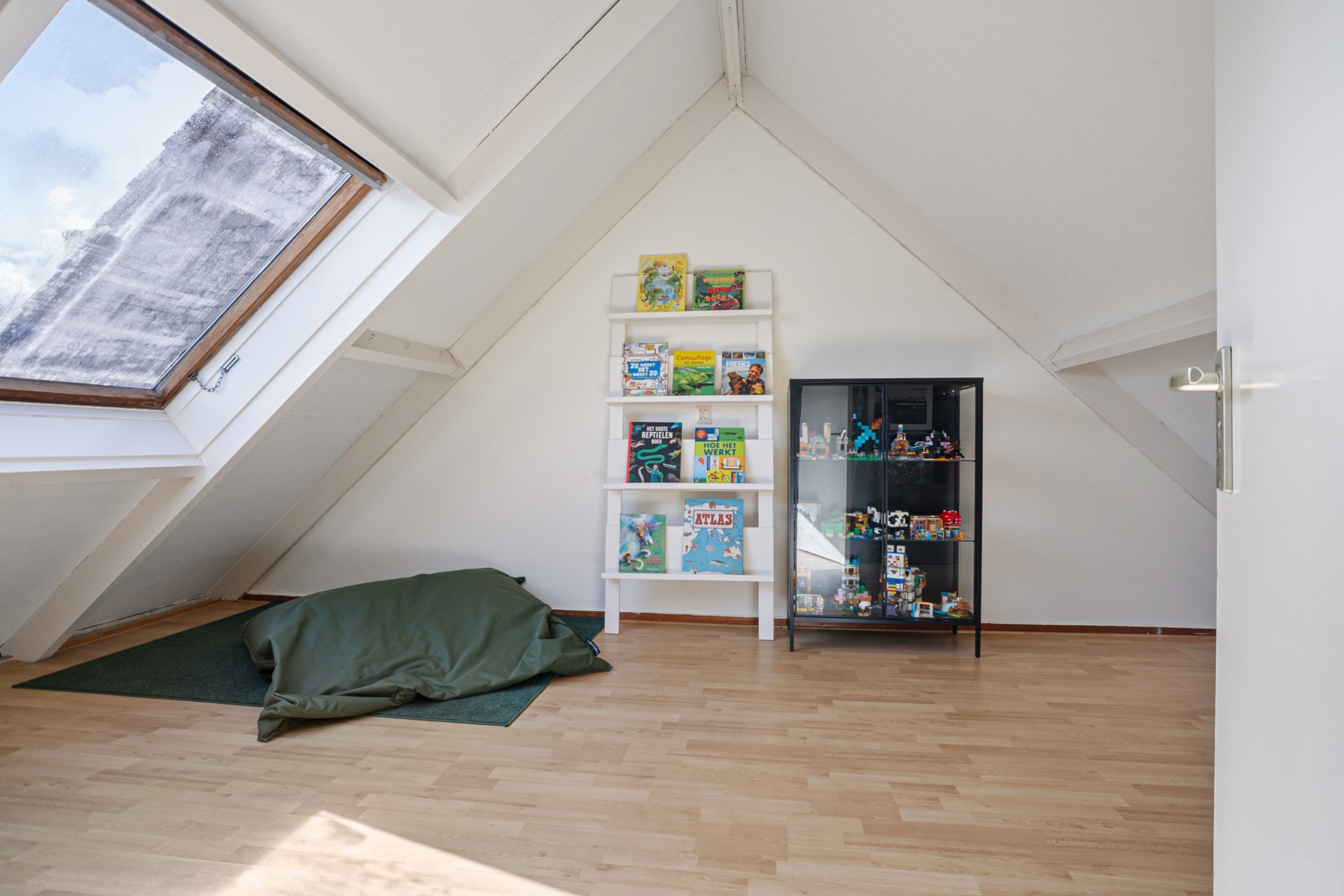 Via de vaste trap naar de tweede verdieping kom je op de voorzolder met cv-opstelling en aansluitingen voor wasmachine en droger. Daarnaast een ruime vierde slaapkamer met dakraam perfect als hobbykamer of werkruimte.