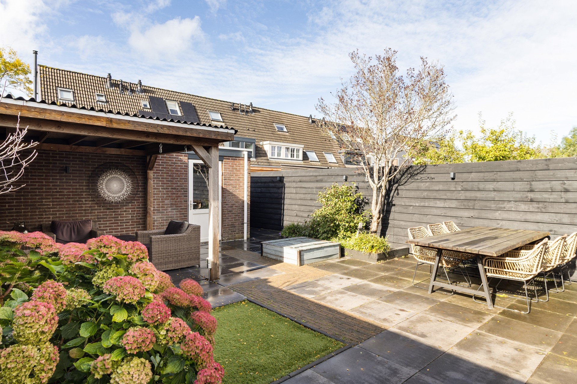 De woning beschikt over een fijne achtertuin waar je de hele dag door kunt genieten van de zon, met achterom én een garage, ideaal voor extra bergruimte of hobby’s. Dankzij de hoekligging geniet je hier van net dat beetje extra privacy.