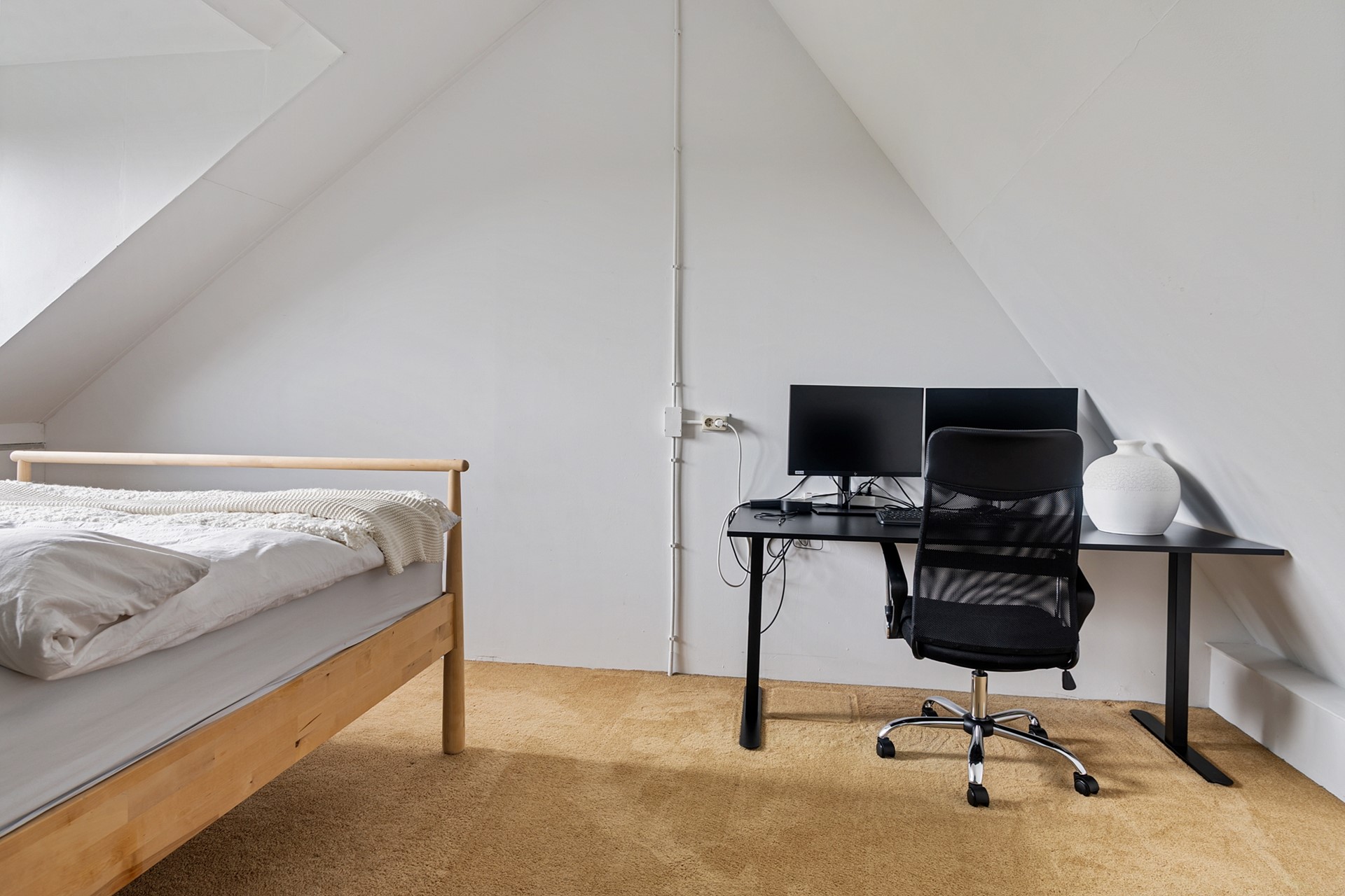 Via een vaste trap bereik je de ruime tweede verdieping. De overloop biedt plek voor de technische installatie en veel bergruimte. Daarnaast is hier een royale vierde slaapkamer gerealiseerd, voorzien van een dakkapel en veel daglichttoetreding.