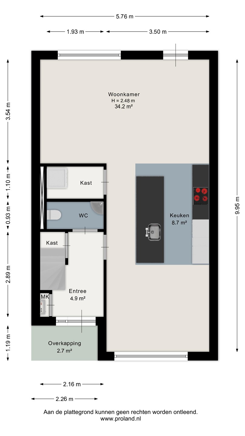 Via de entree aan de voorzijde betreed je de woning. In de hal vind je de meterkast, het moderne toilet (wandcloset met fontein) en de trapopgang naar de eerste verdieping.