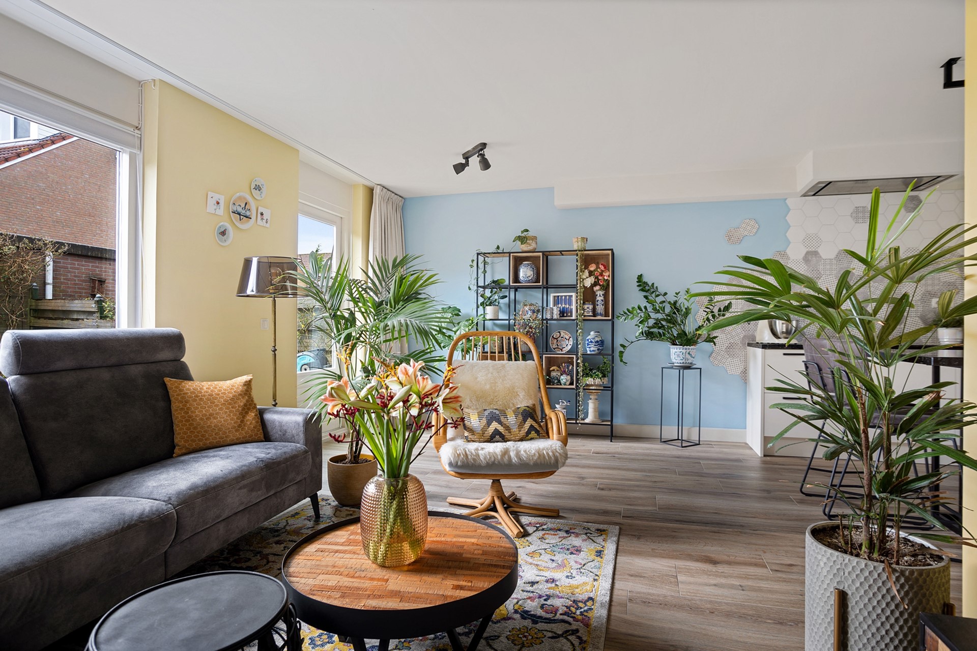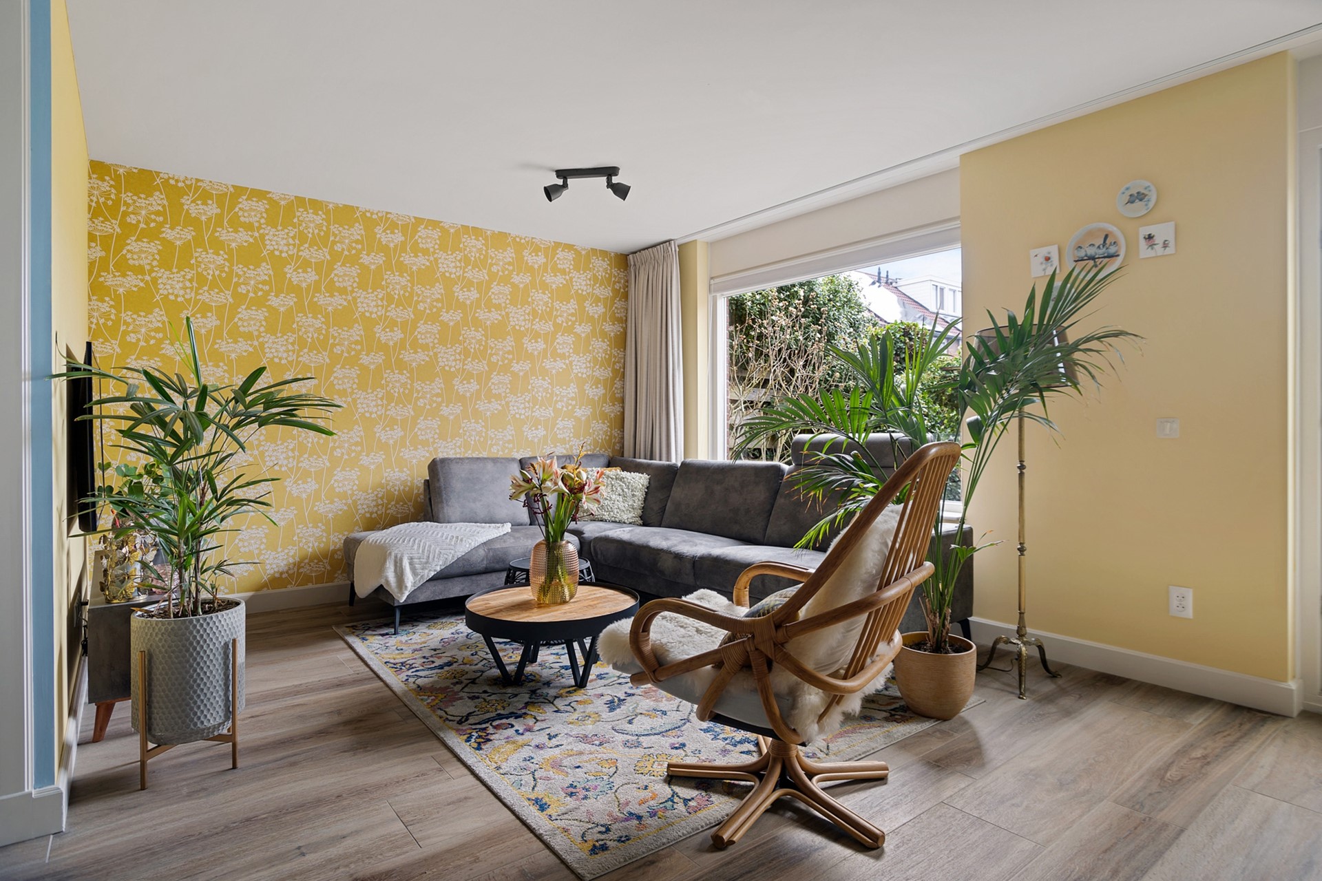 Aan de achterzijde ligt de tuingerichte woonkamer met openslaande tuindeur naar de achtertuin. Dankzij de grote ramen is dit een heerlijk lichte ruimte met prettig uitzicht op de tuin.
