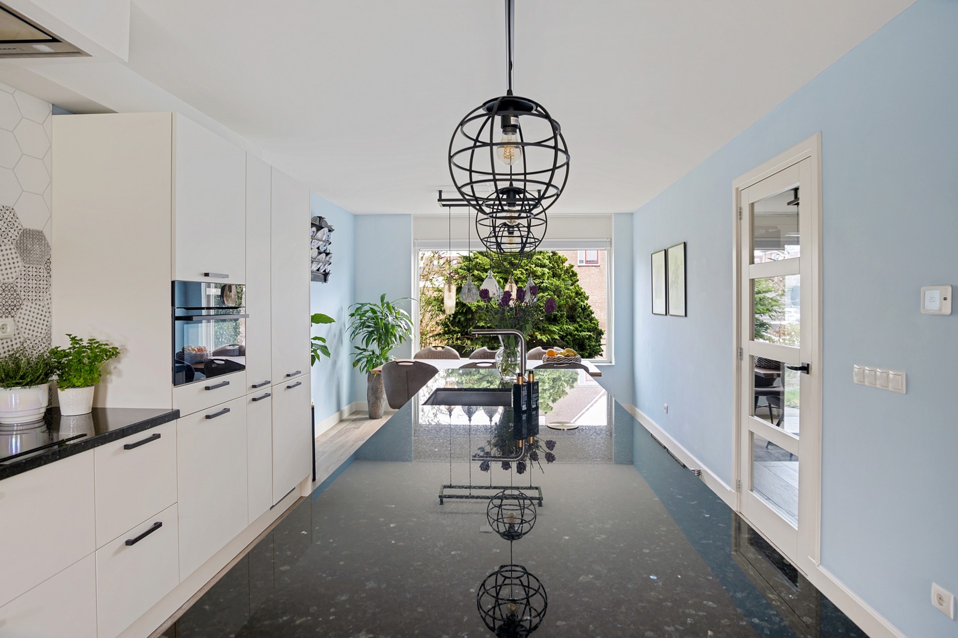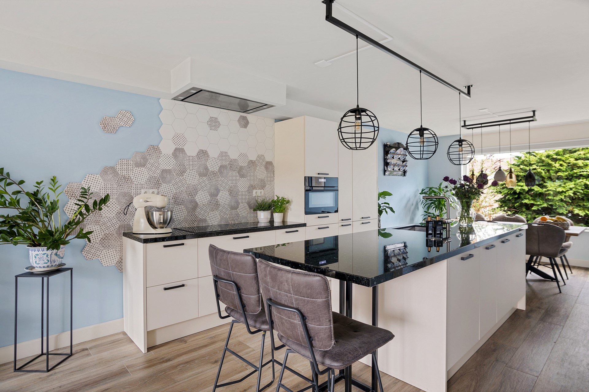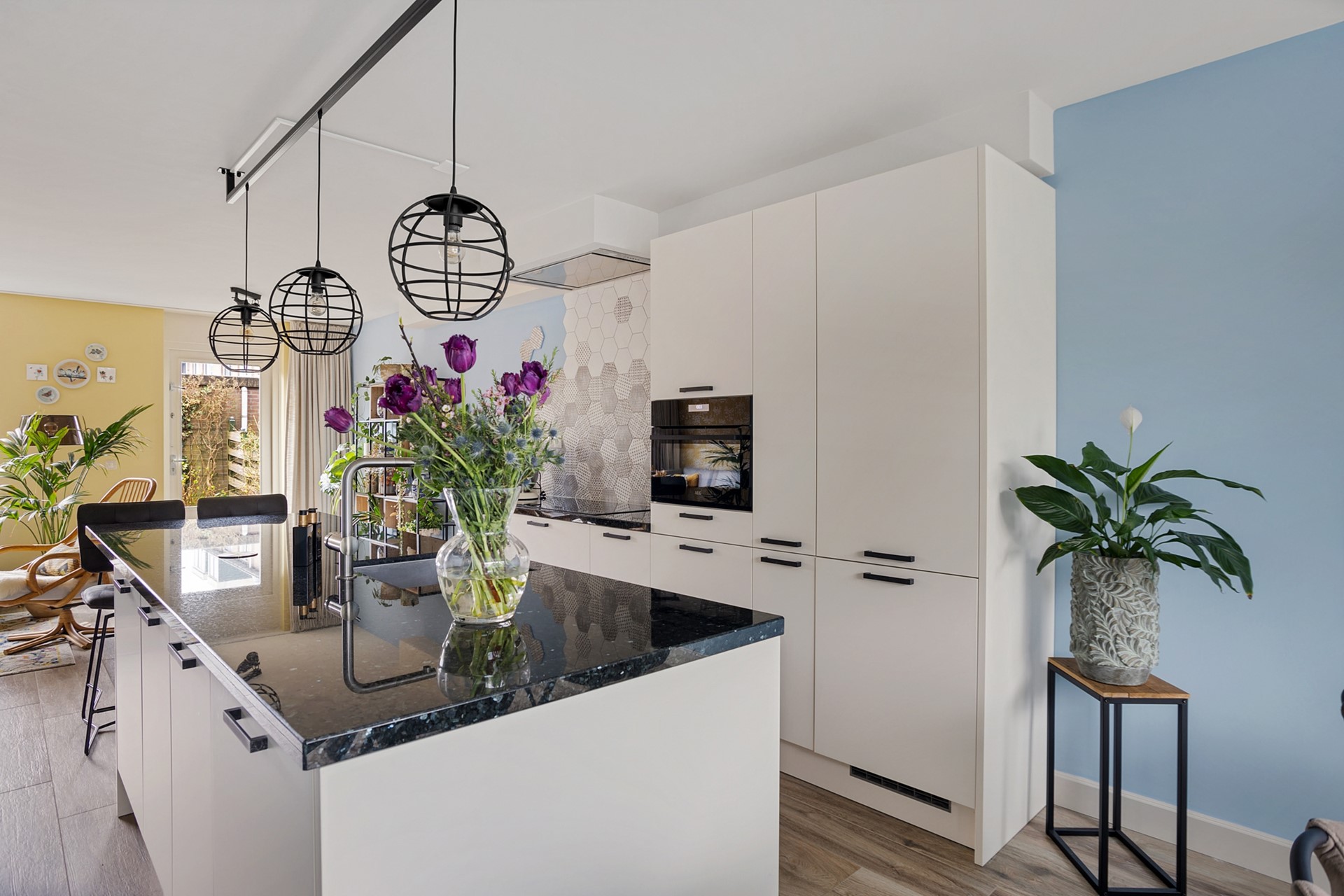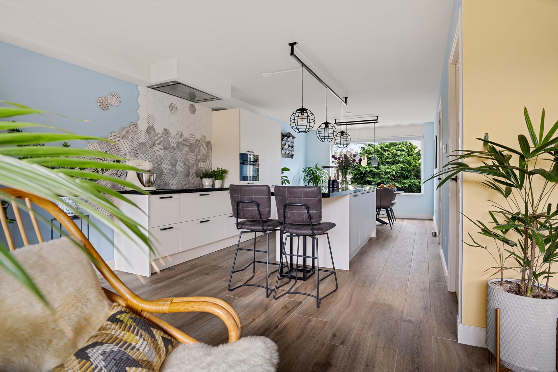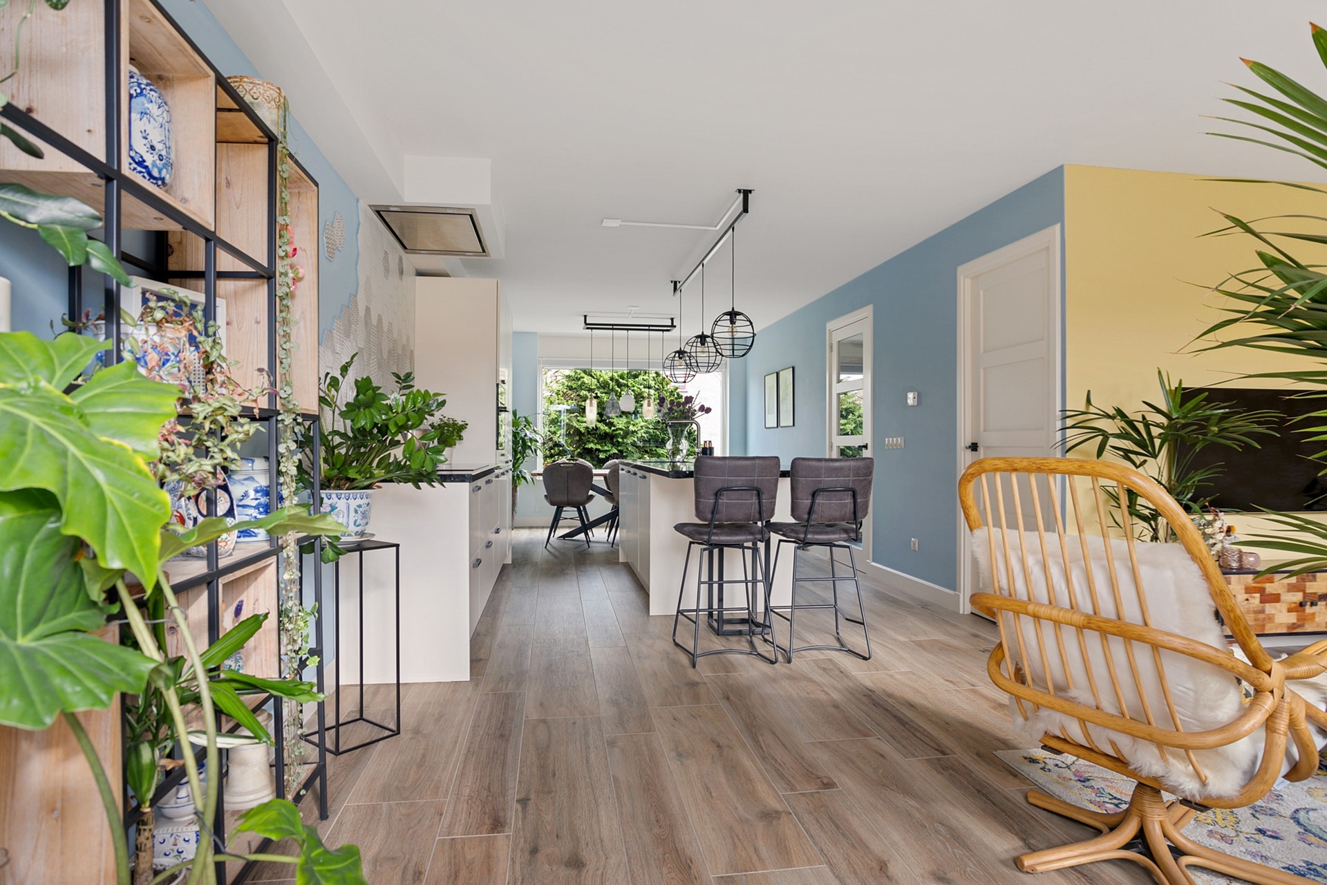 Aan de voorzijde van de woning bevindt zich de straatgerichte eetkamer, een heerlijke plek voor diners of gezellige avonden met vrienden en familie. De eetkamer staat in open verbinding met de super deluxe keuken, die is voorzien van diverse inbouwapparatuur waaronder een inductiekookplaat, vaatwasser, koel-vriescombinatie en een combi-oven. De keuken biedt veel werk- en bergruimte en vormt het hart van de woning.