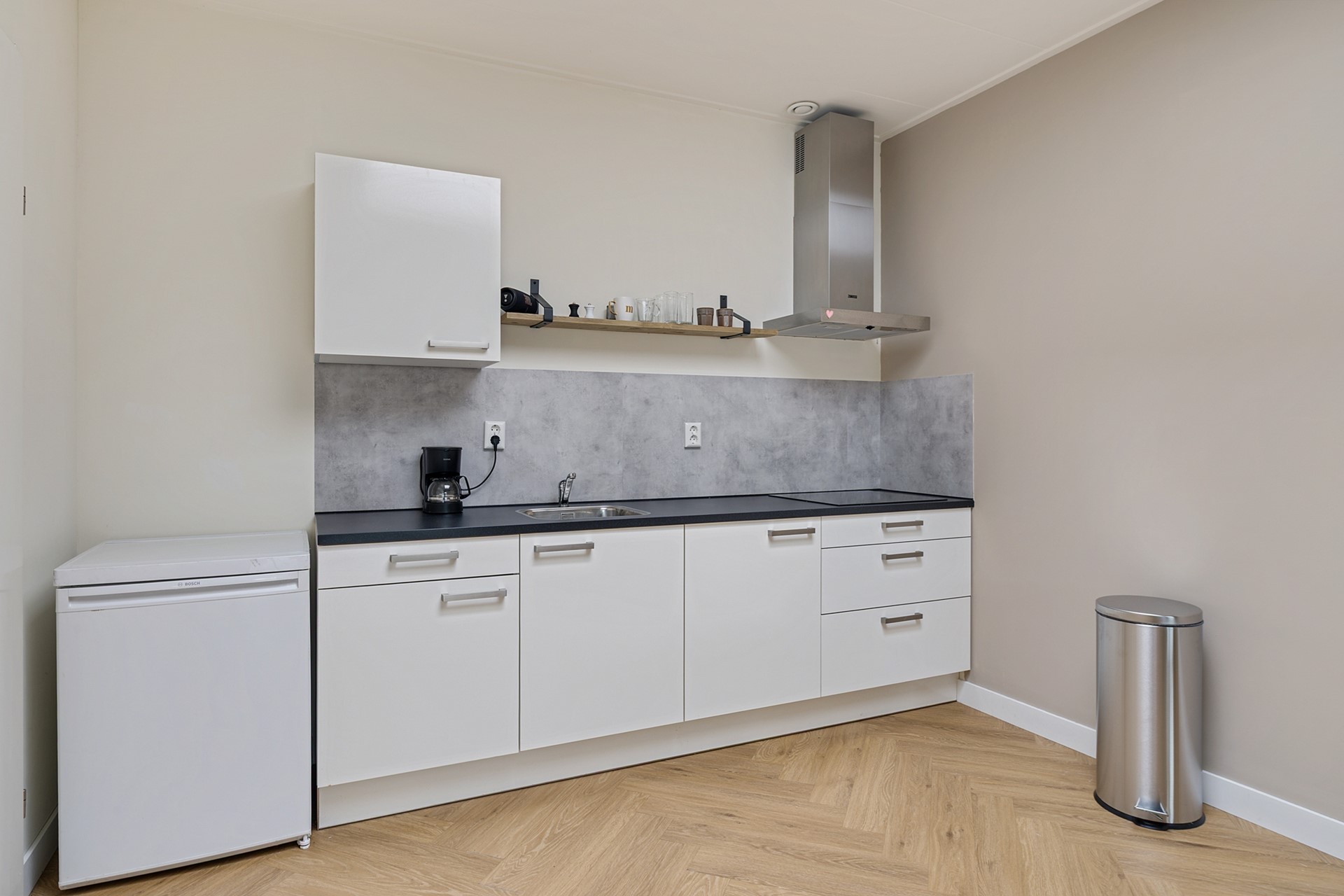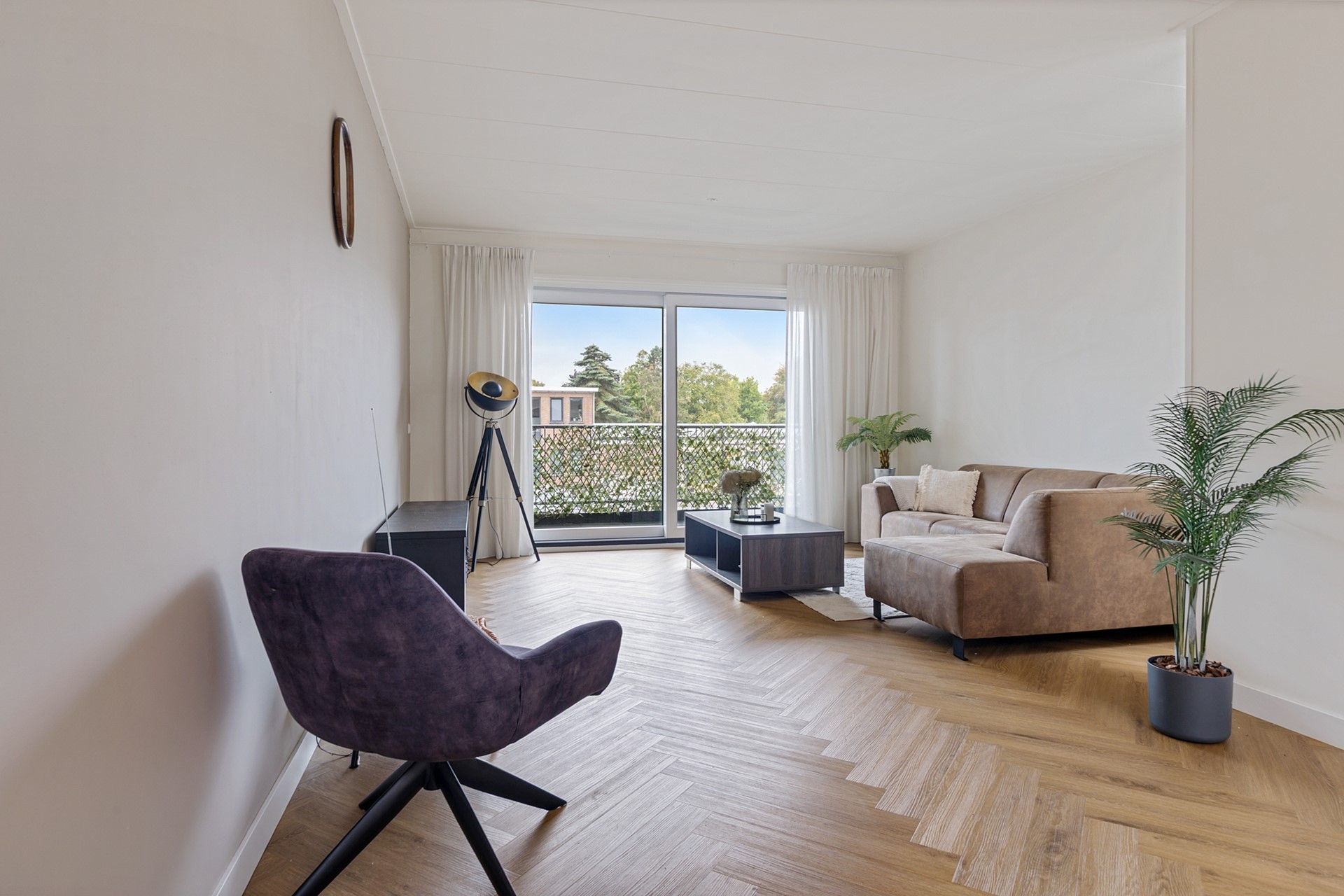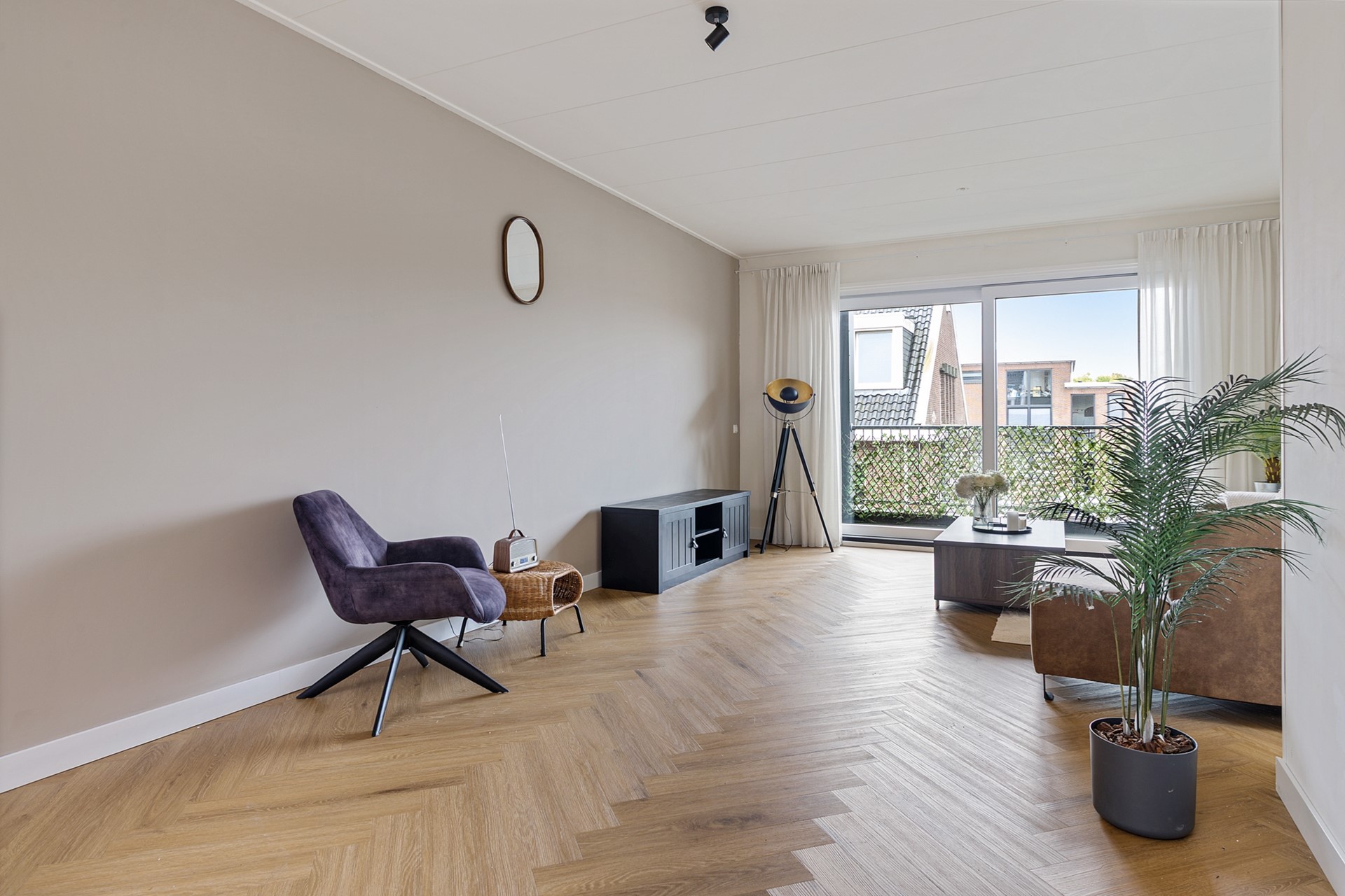 Op de eerste verdieping bereikt u de tussenhal met moderne toiletruimte en de royaal bemeten woonkamer. De woonkamer beschikt over een brede kunststof schuifpui, welke toegang geeft tot het zonnige balkon (ca. 9m²) op het zuidwesten. Vanwege de ligging op de eerste verdieping kunt u hier in alle privacy van de zon genieten! Open keuken in rechte opstelling aan de achterzijde is uitgerust met enkele spoelbak, inductiekookplaat en afzuigkap. Naast de keuken treft u een bergkast, waar ruimte is voor een extra koelkast.