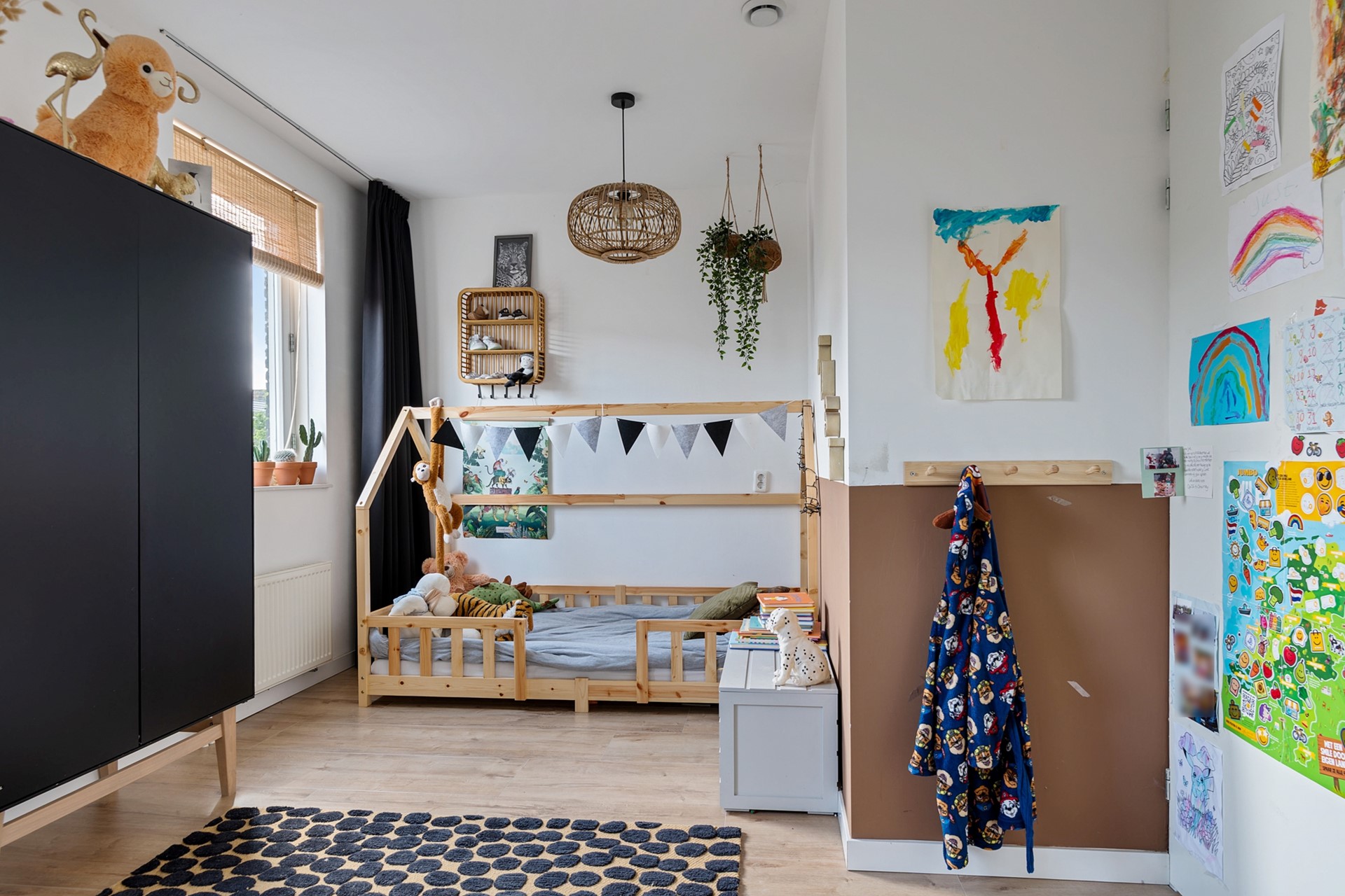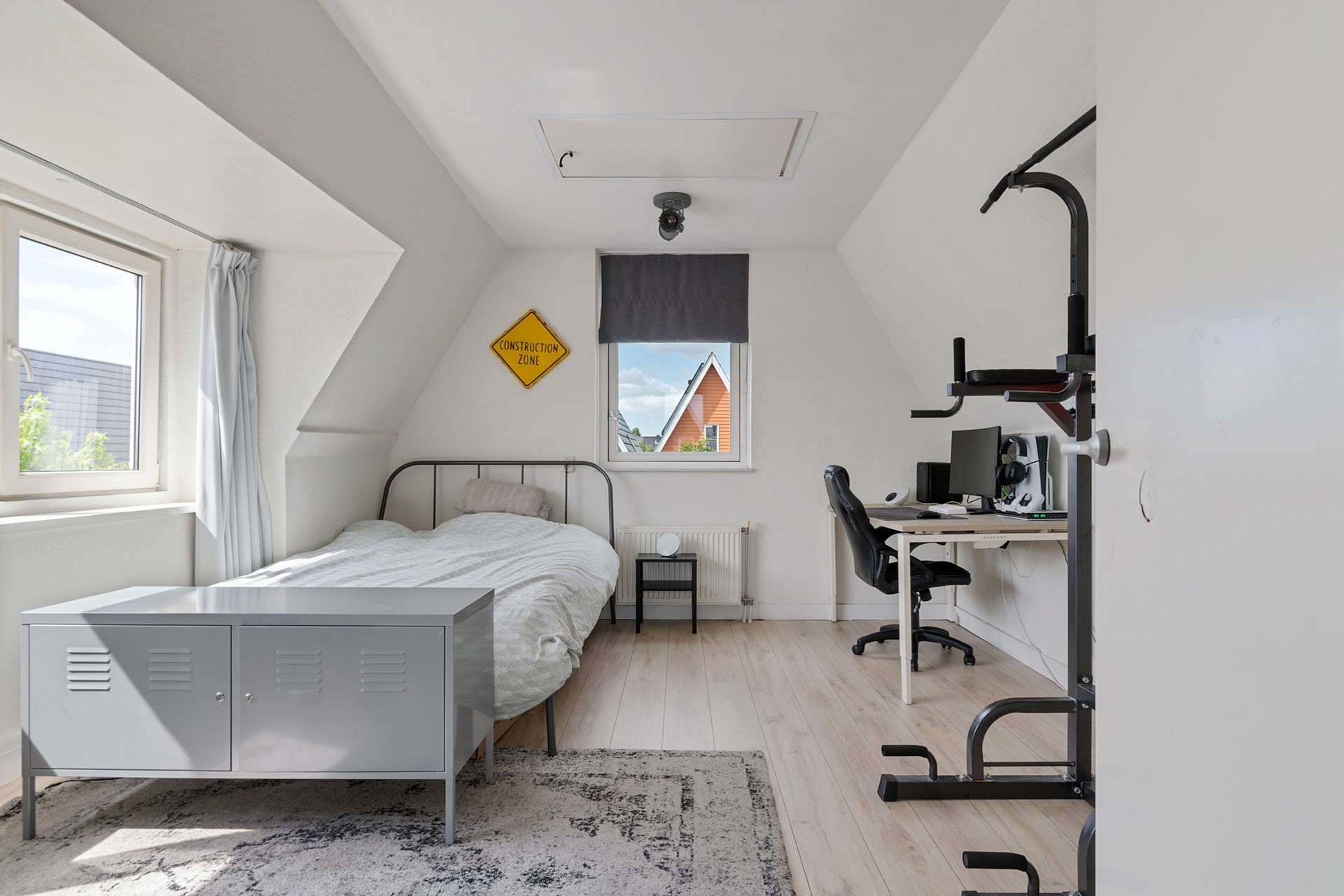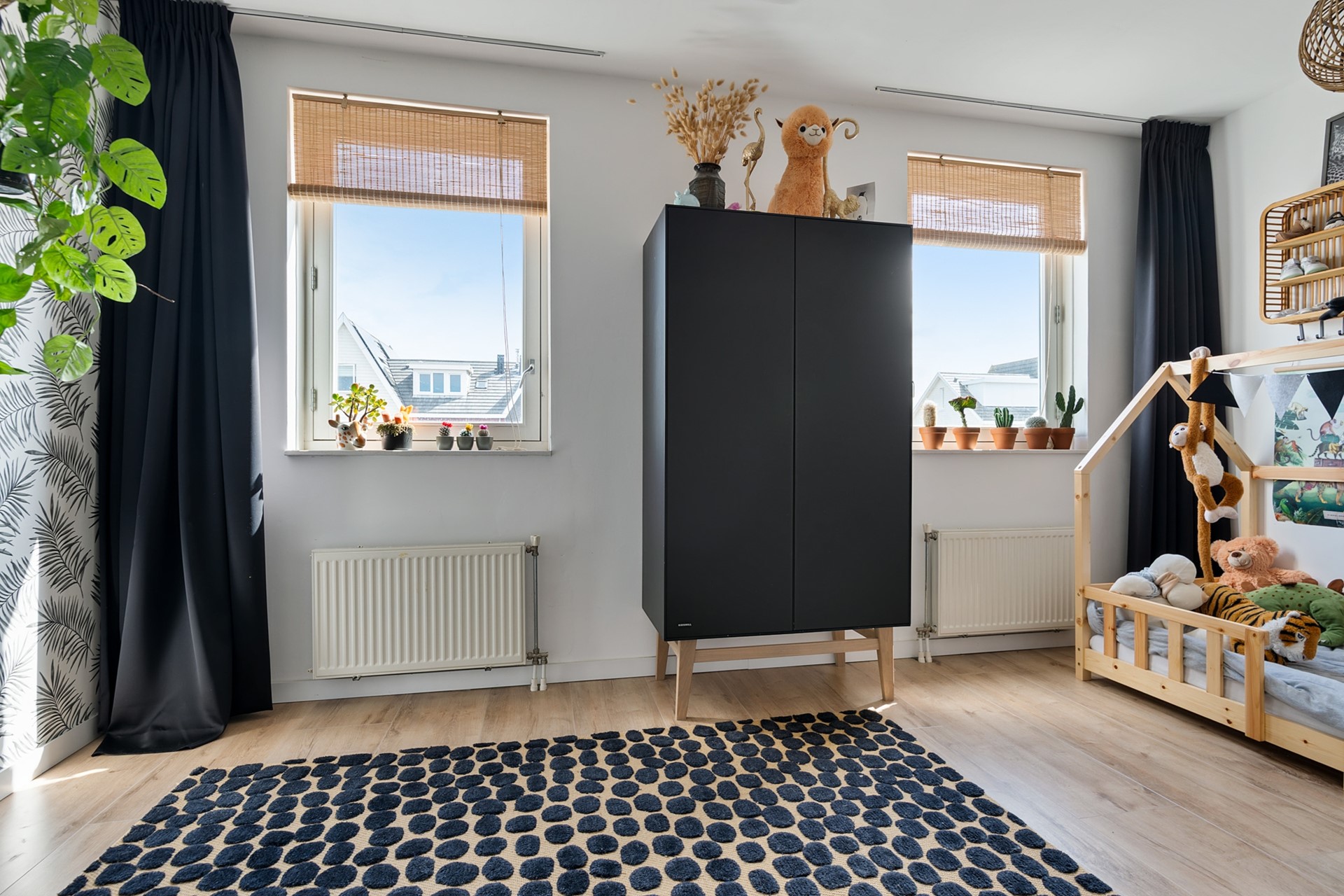 Dankzij de grote dakkapel op de tweede verdieping geniet je van extra ruimte en licht. De woning telt drie ruime slaapkamers, een stijlvolle badkamer met dubbele wastafel en biedt volop ruimte.
